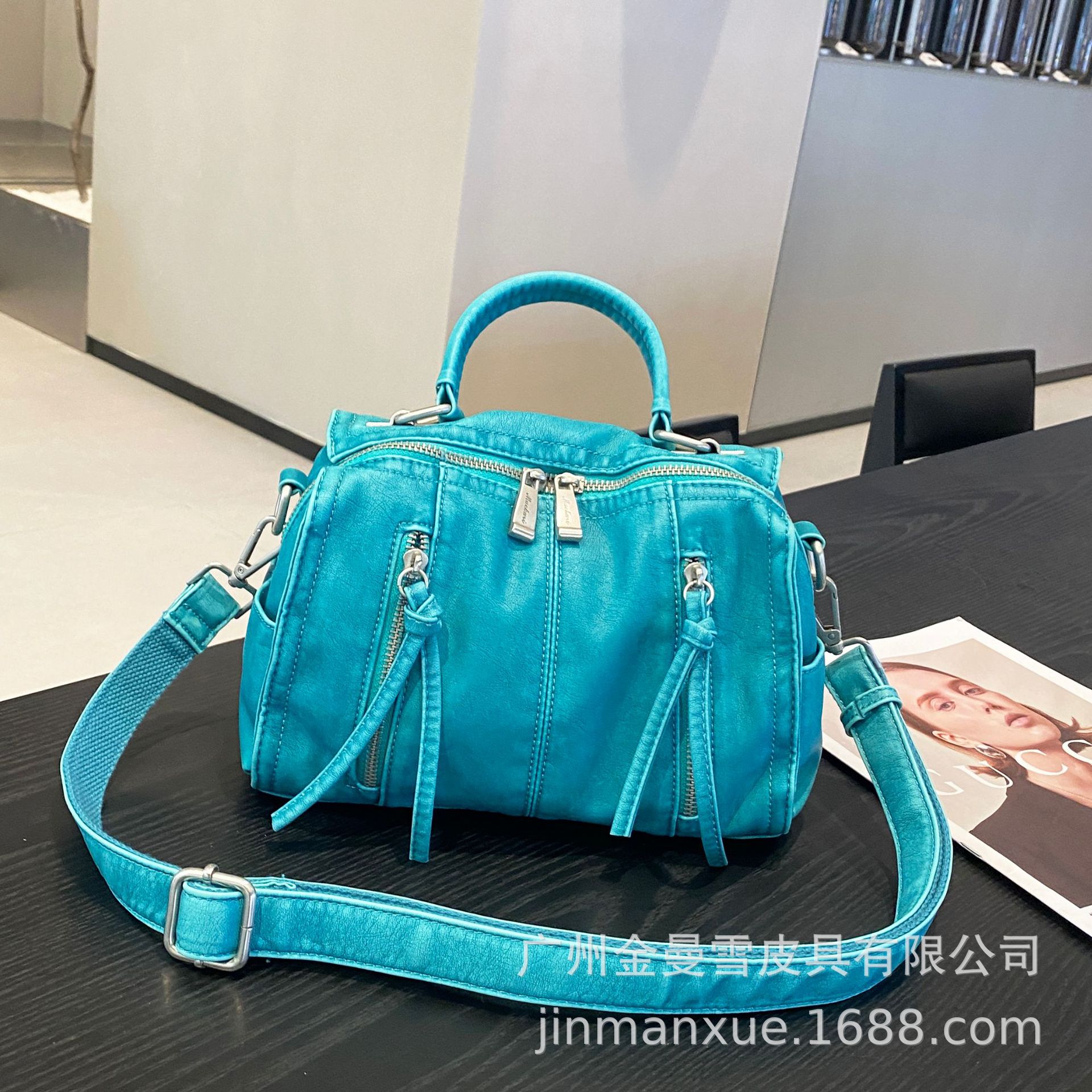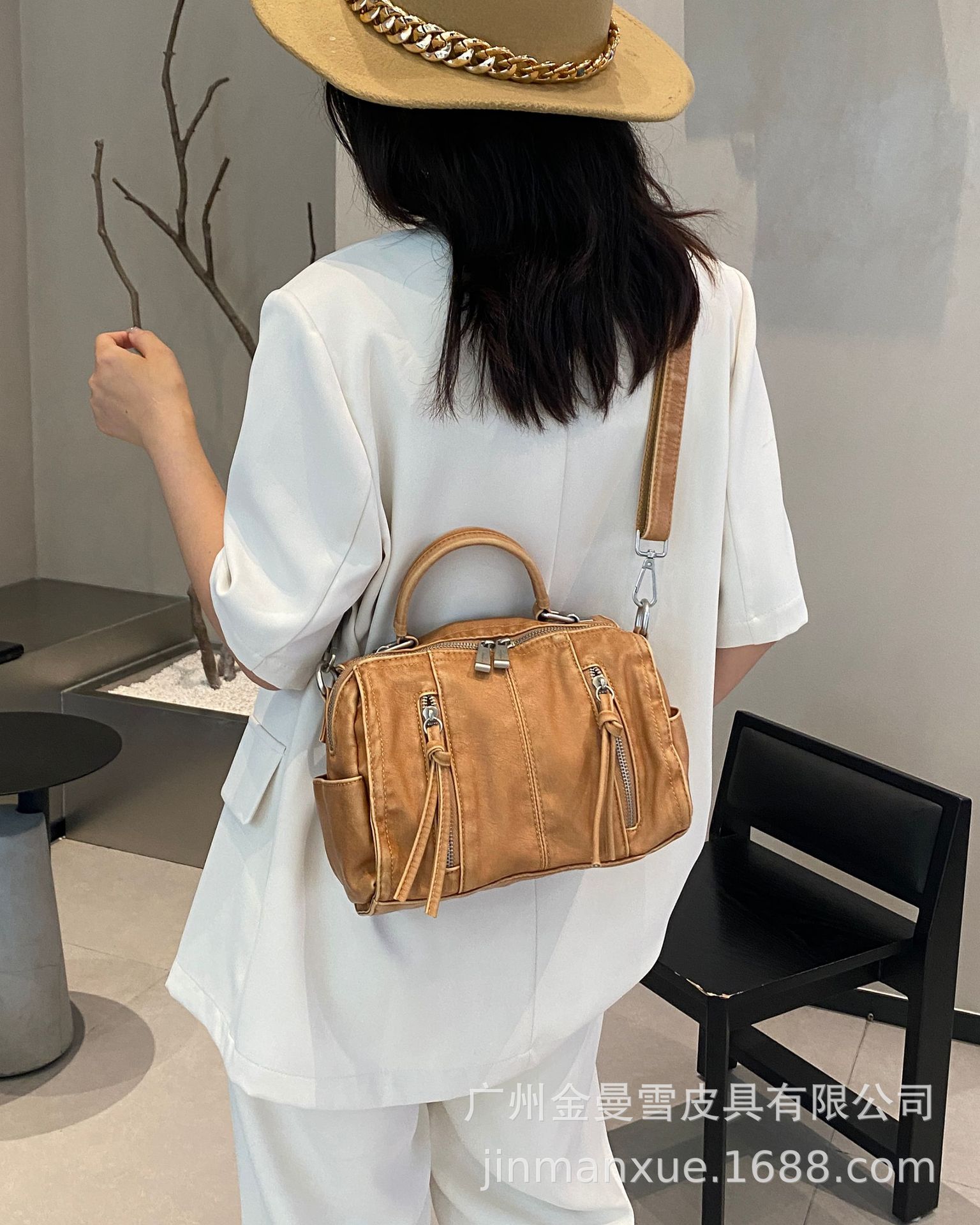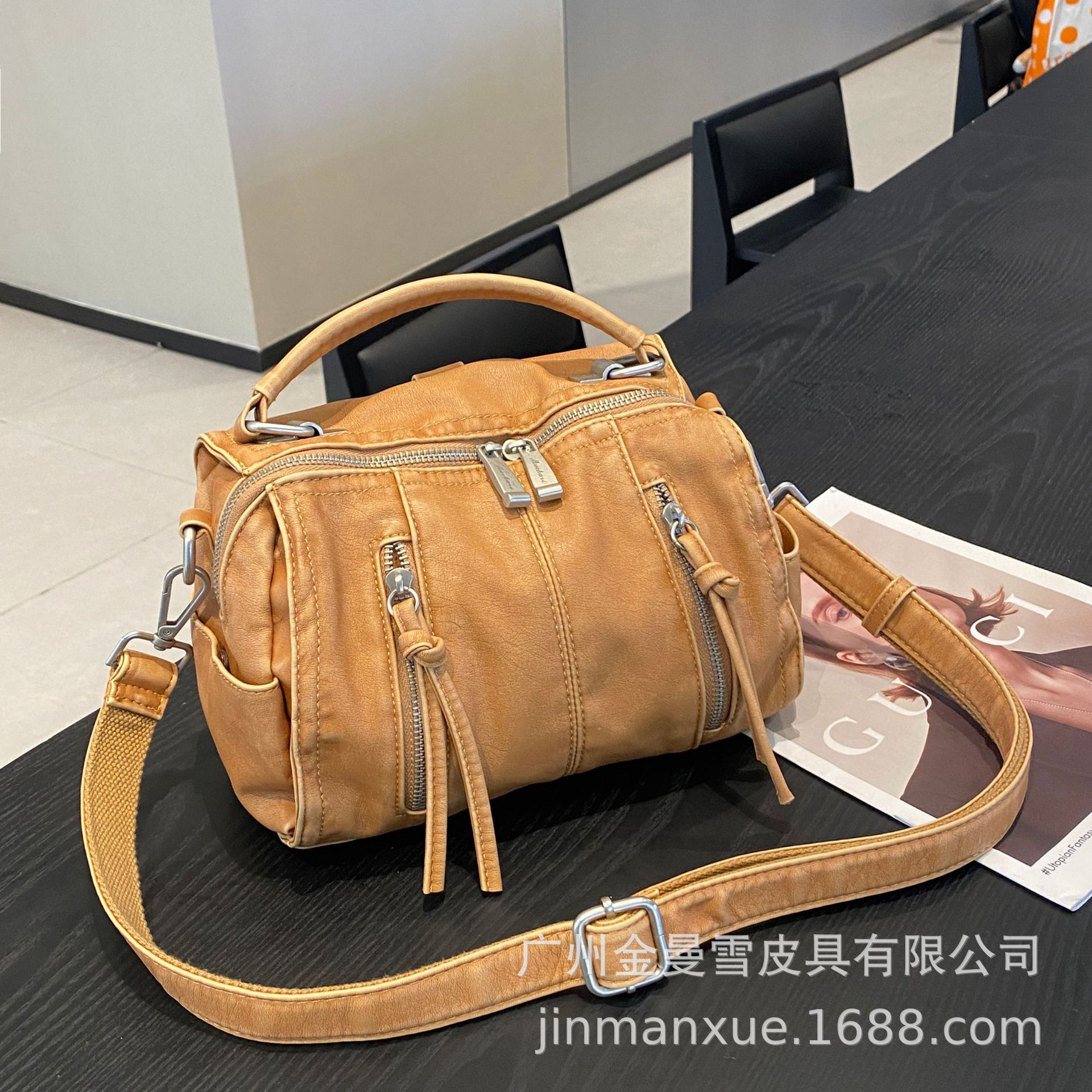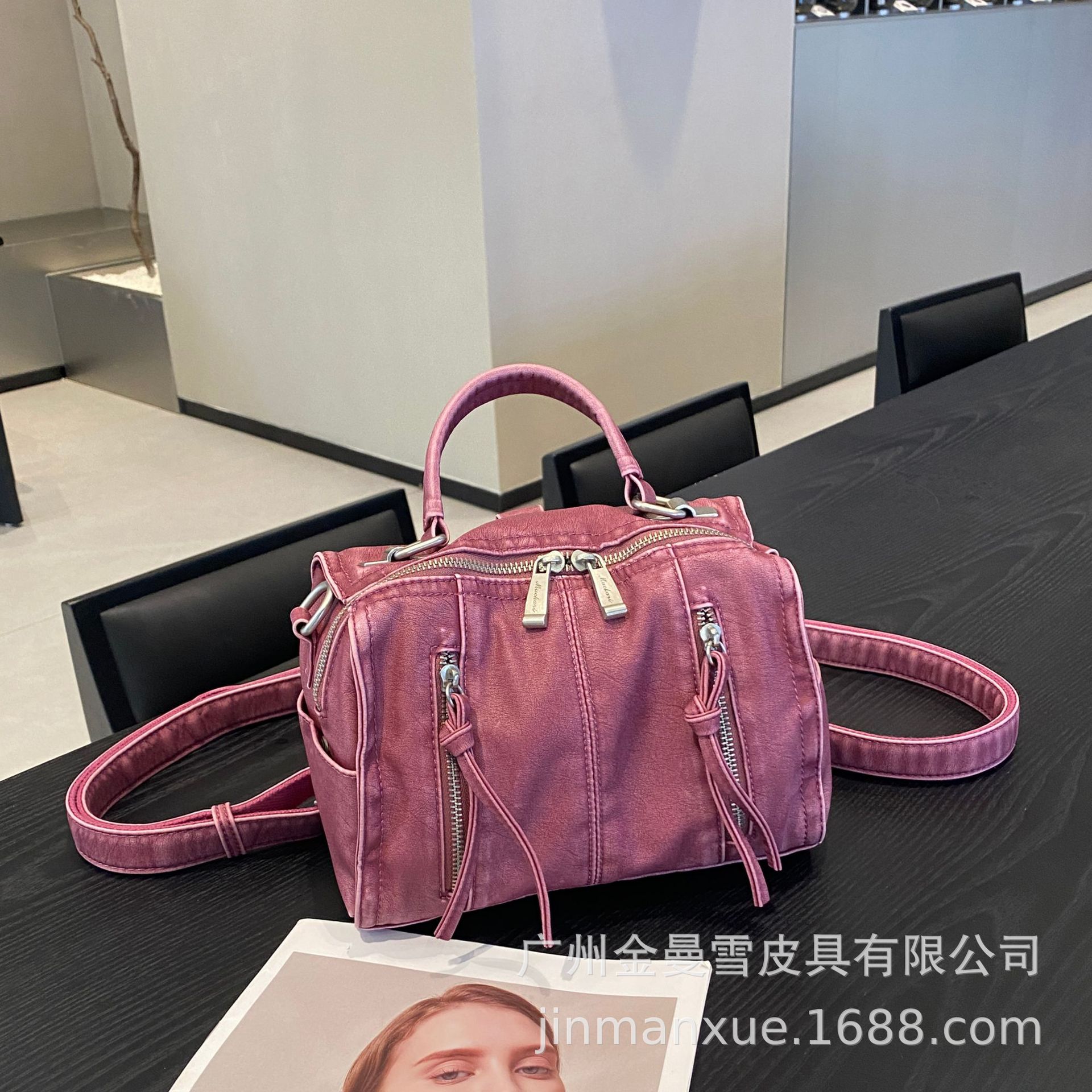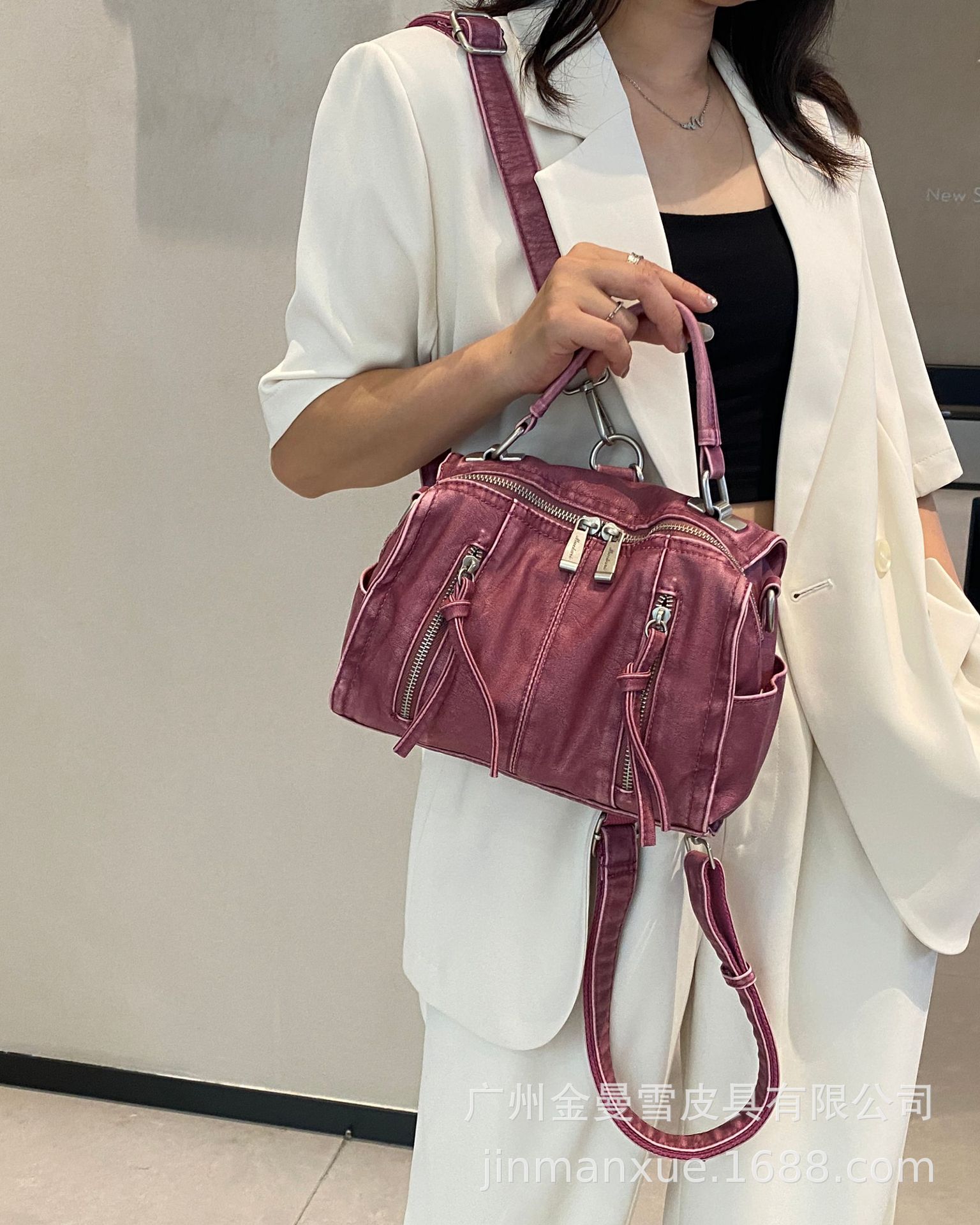 국경 간 Mucari 캐주얼 핸드백 2025 새로운 다목적 보스턴 패션 싱글 숄더 크로스 바디 백 부드러운 가죽 배낭