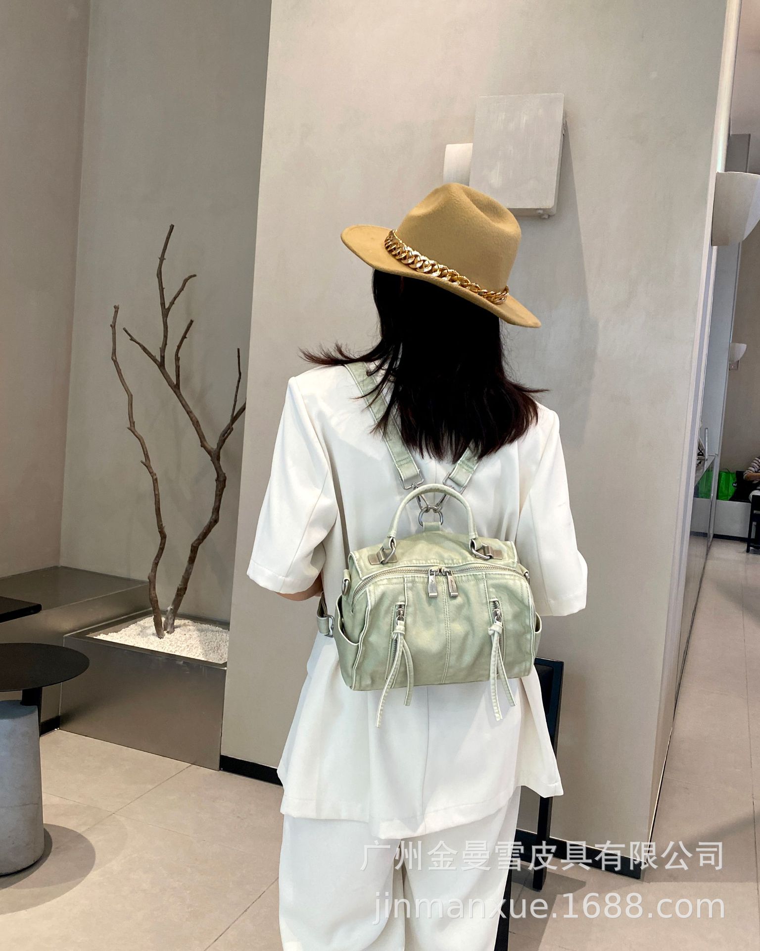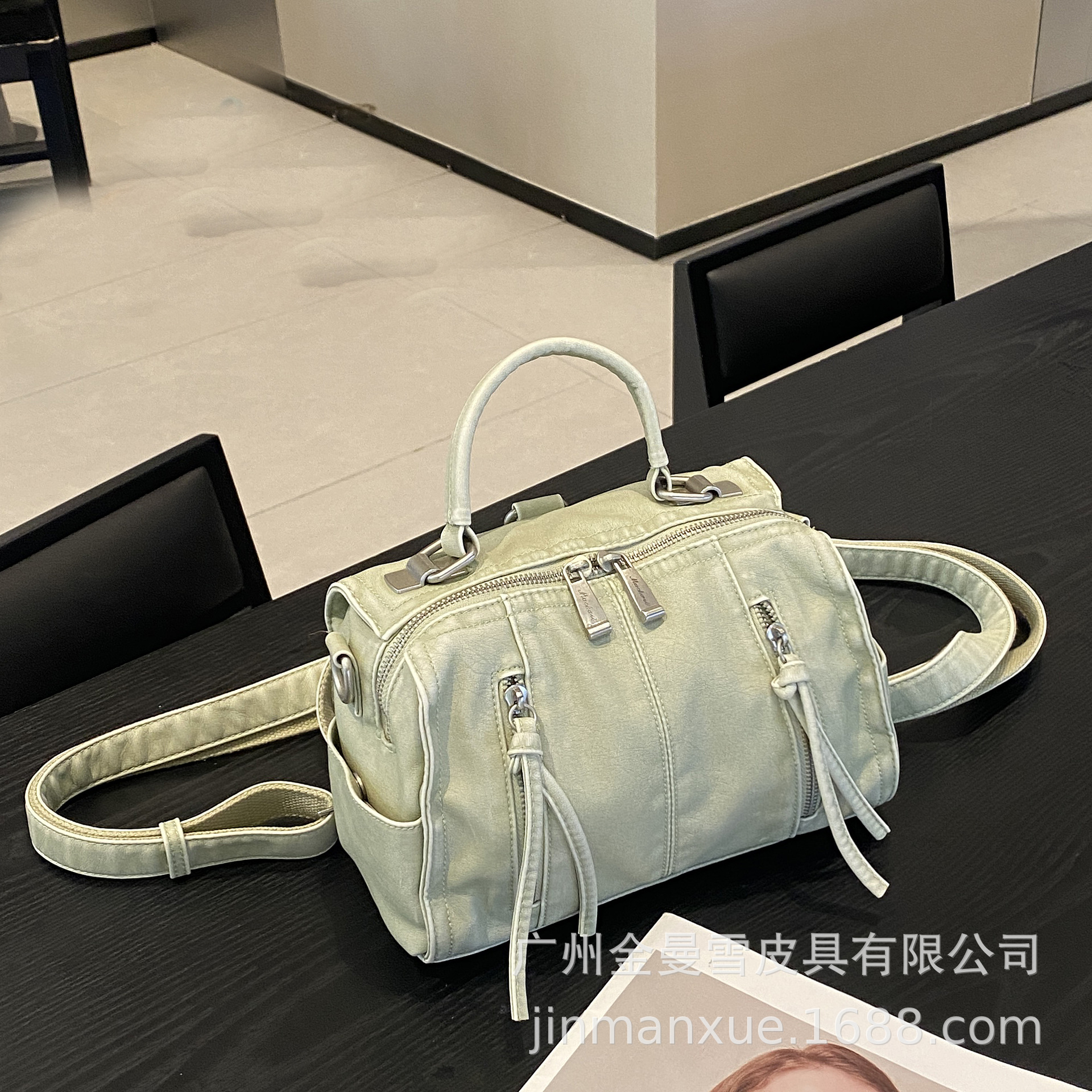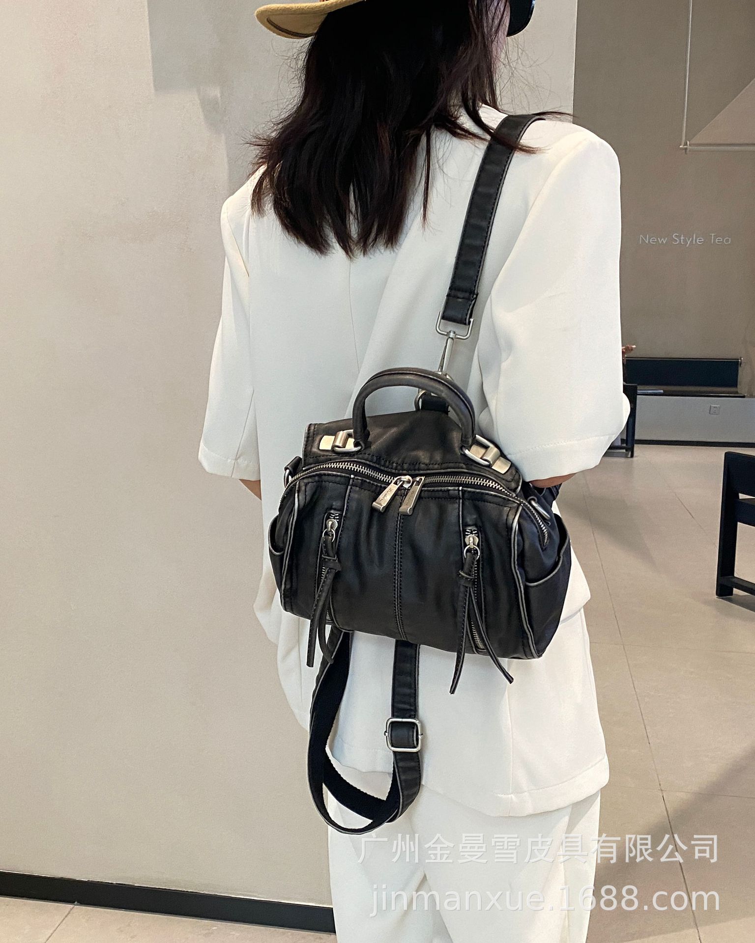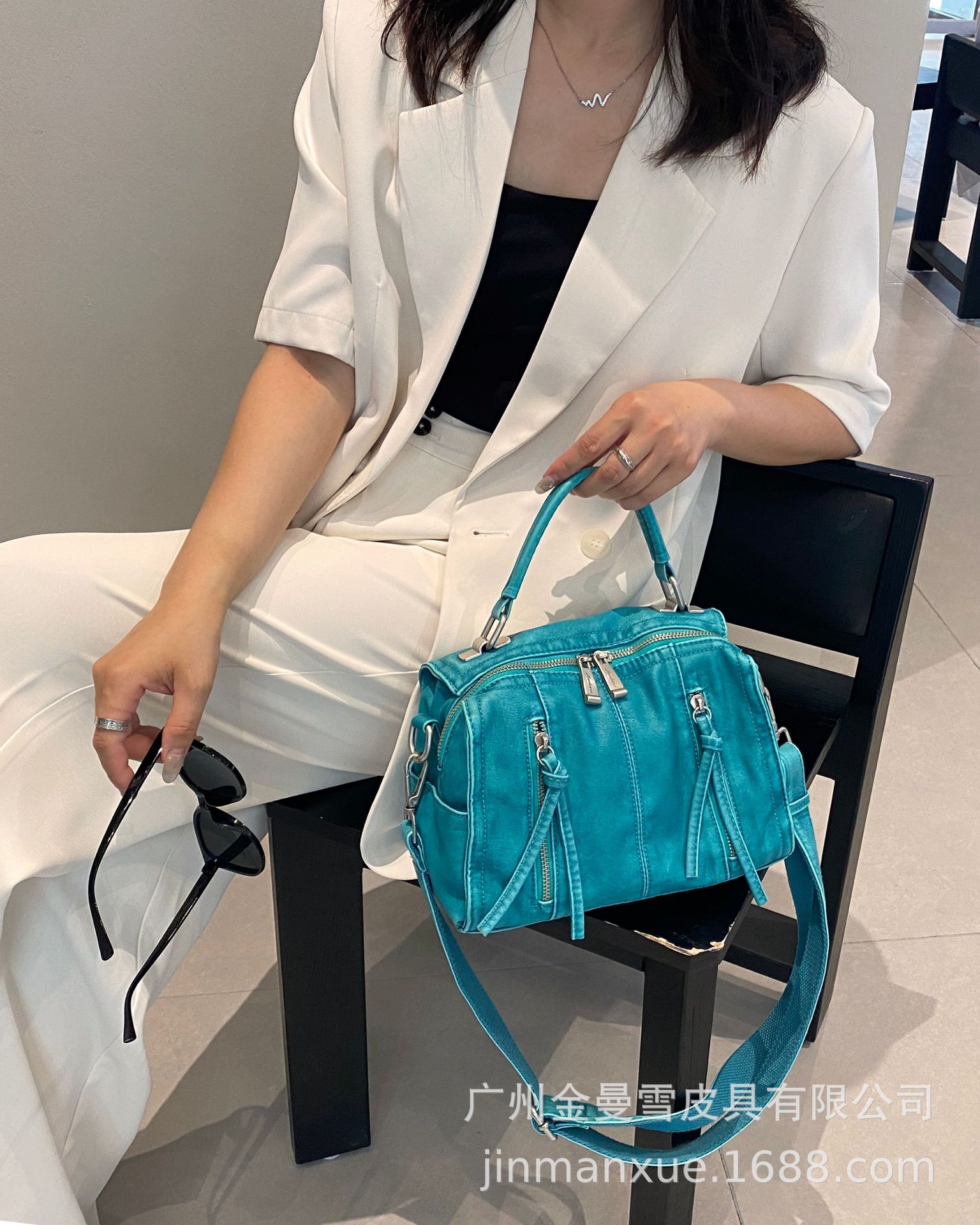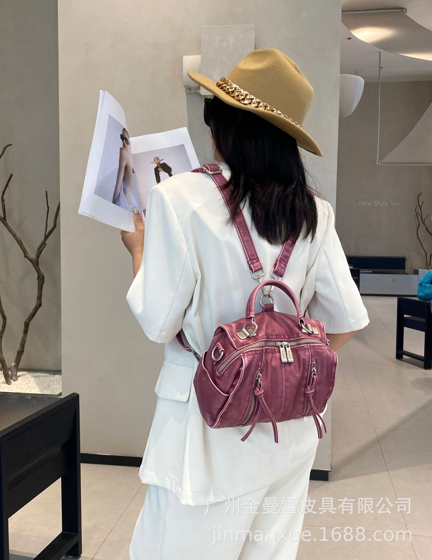국경 간 Mucari 캐주얼 핸드백 2025 새로운 다목적 보스턴 패션 싱글 숄더 크로스 바디 백 부드러운 가죽 배낭