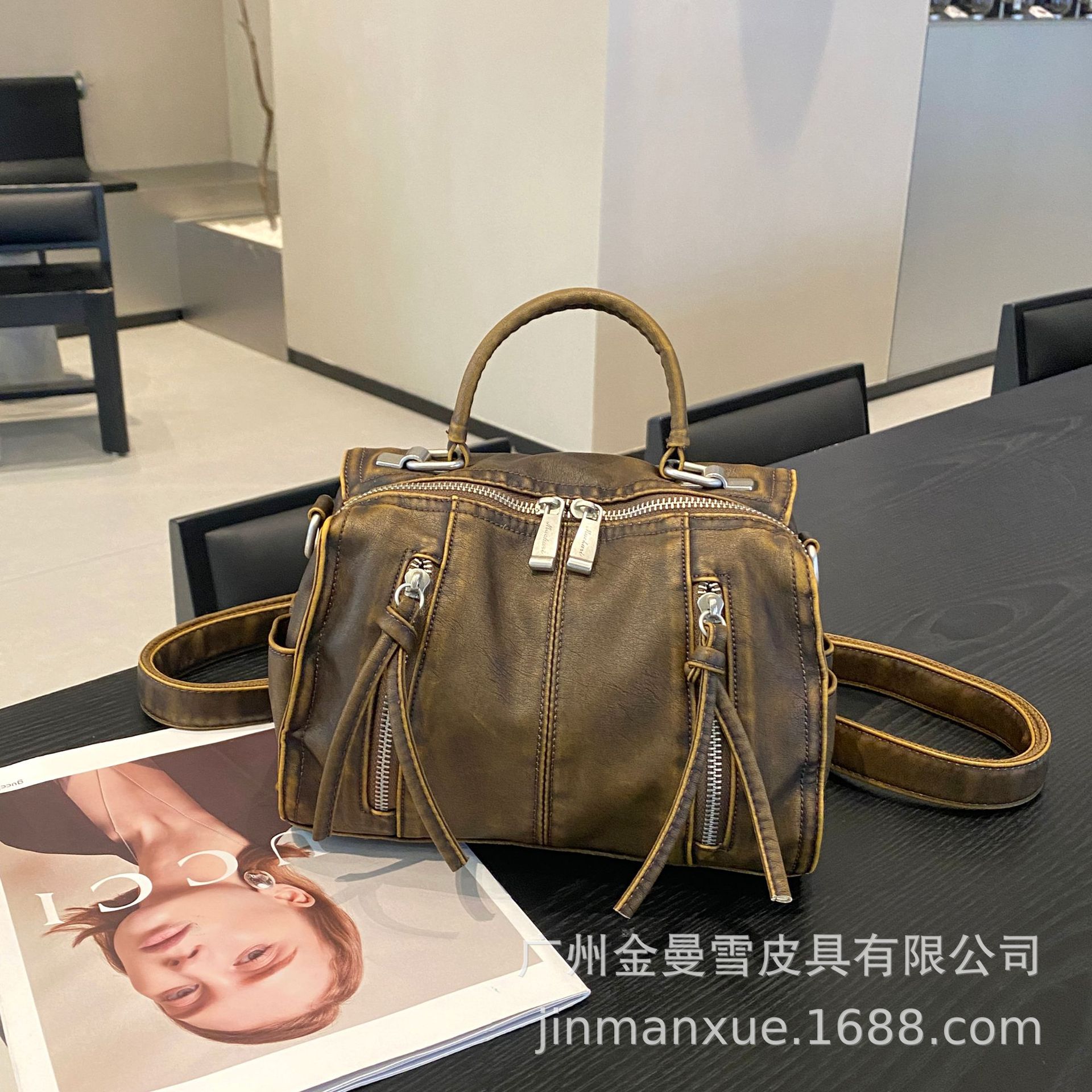 국경 간 Mucari 캐주얼 핸드백 2025 새로운 다목적 보스턴 패션 싱글 숄더 크로스 바디 백 부드러운 가죽 배낭스토어 가기