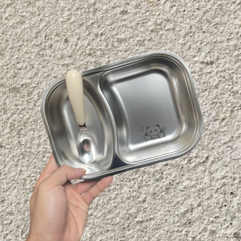 • 대나무 팬더 더블 그리드 플레이트 + 스푼