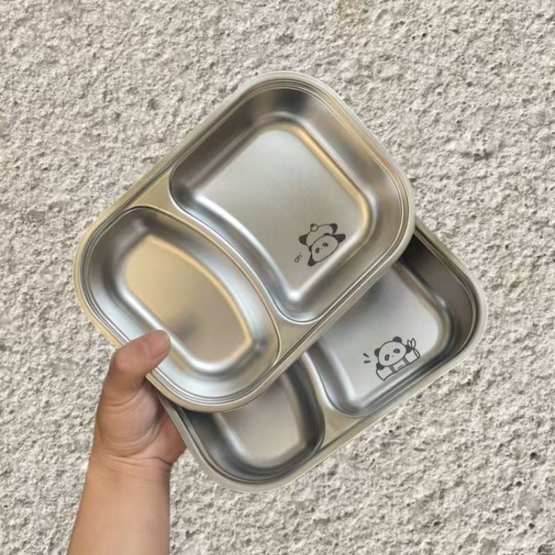 스테인레스 스틸 어린이 디너 플레이트 유치원 가정용 아기 스테인레스 스틸 디너 플레이트 드롭 방지 멀티 그리드 런치 박스 고가 도시락