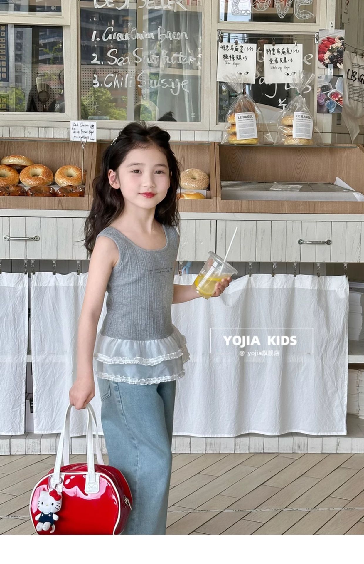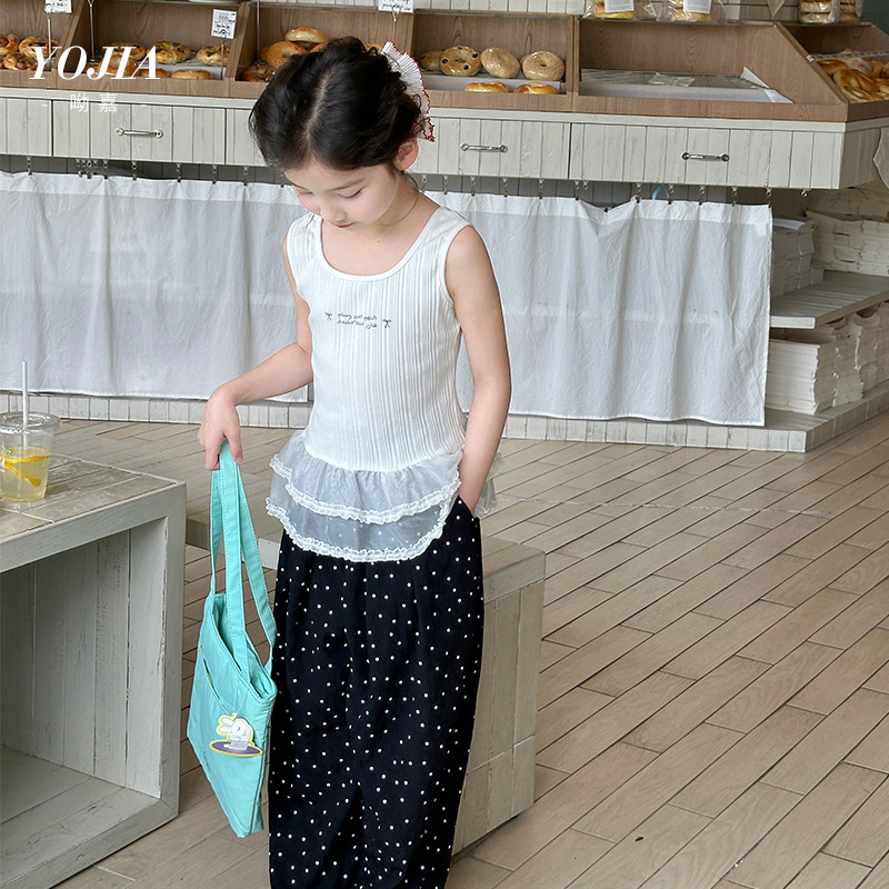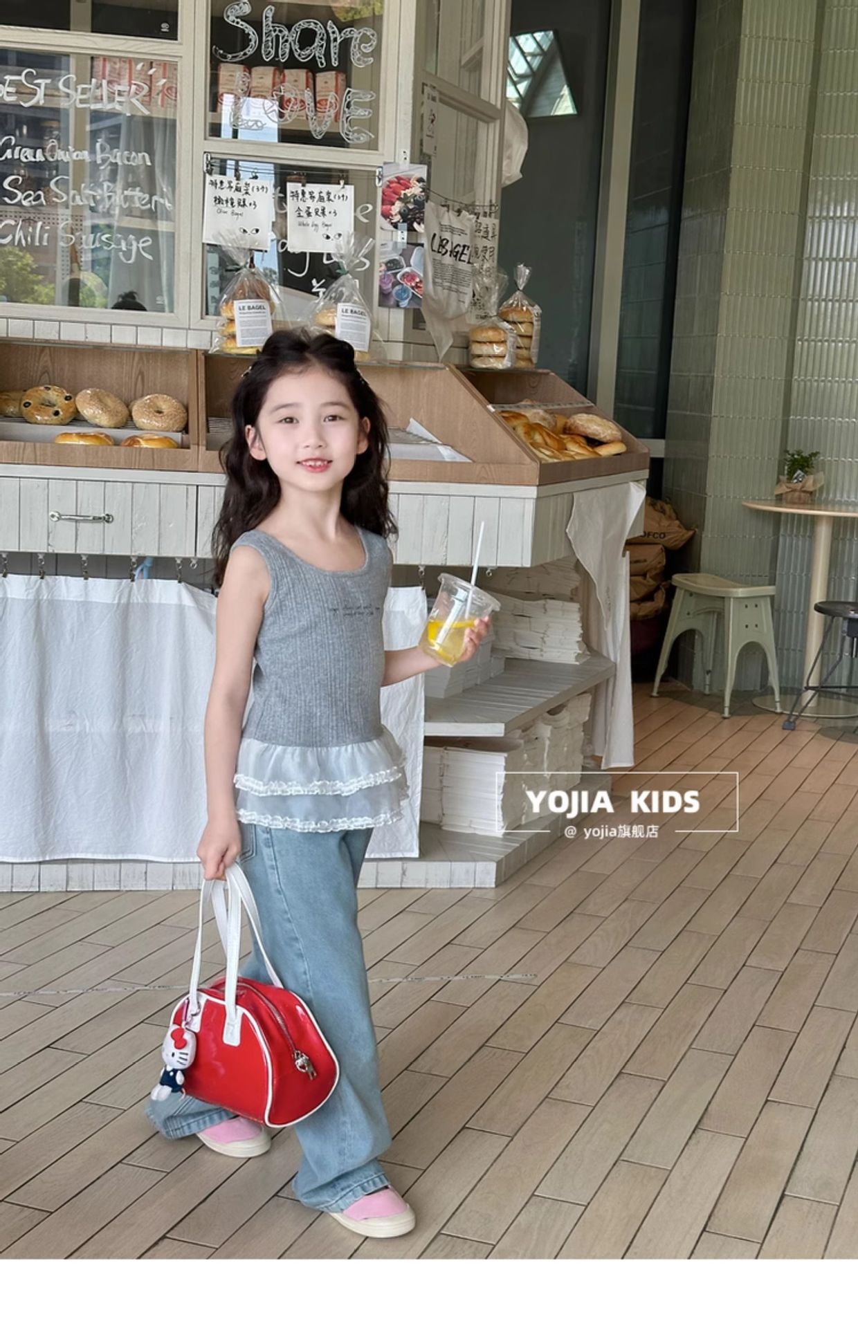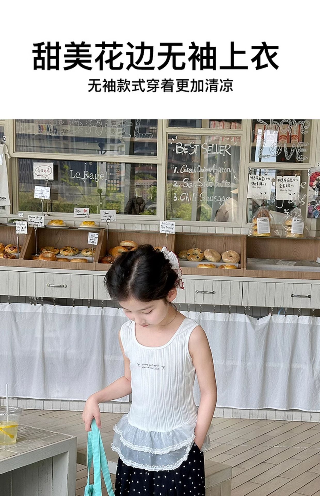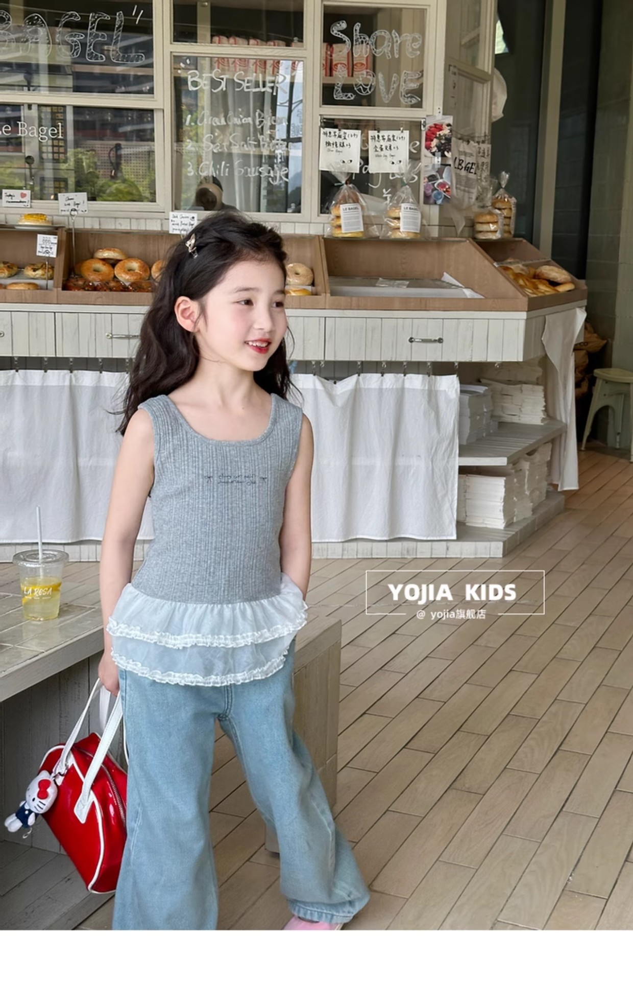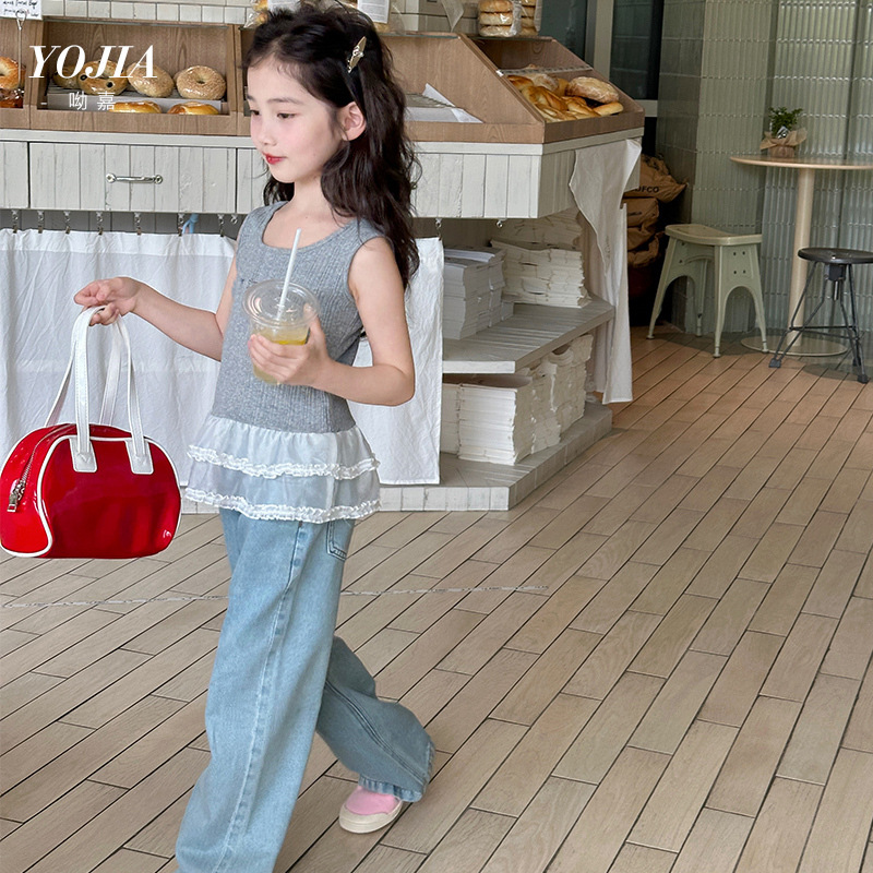 YOJIA 소녀 조끼 여름 2025 새로운 스타일 레이스 아동복 어린 소녀 콘돌 탑 아동복스토어 가기