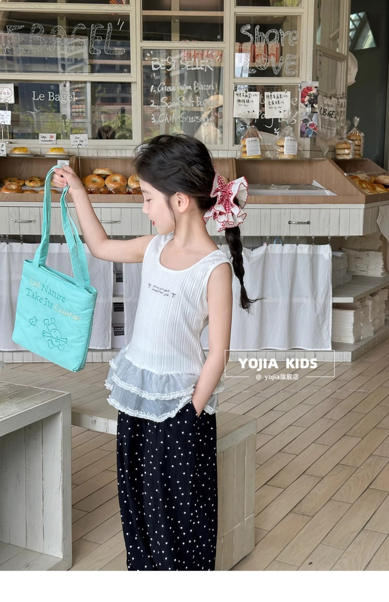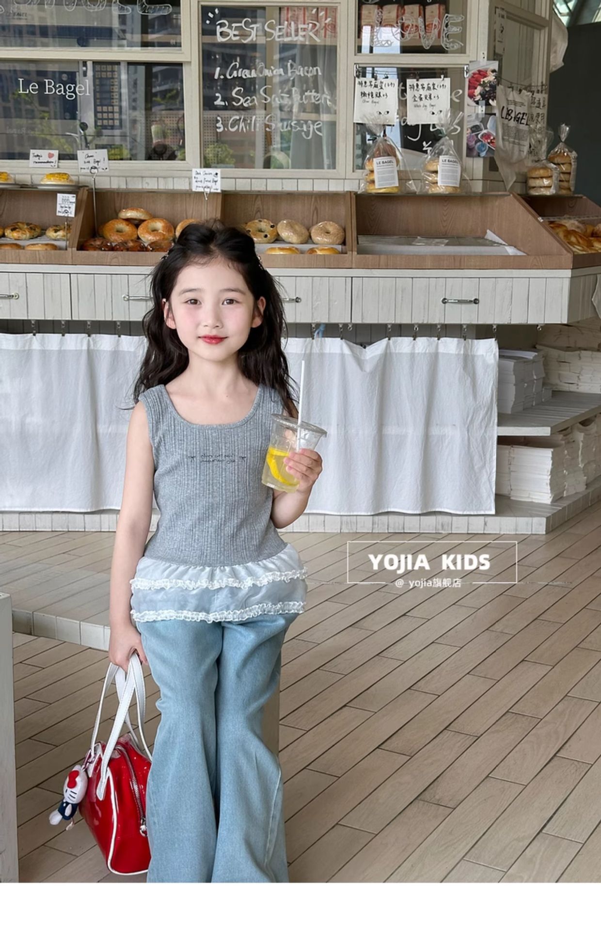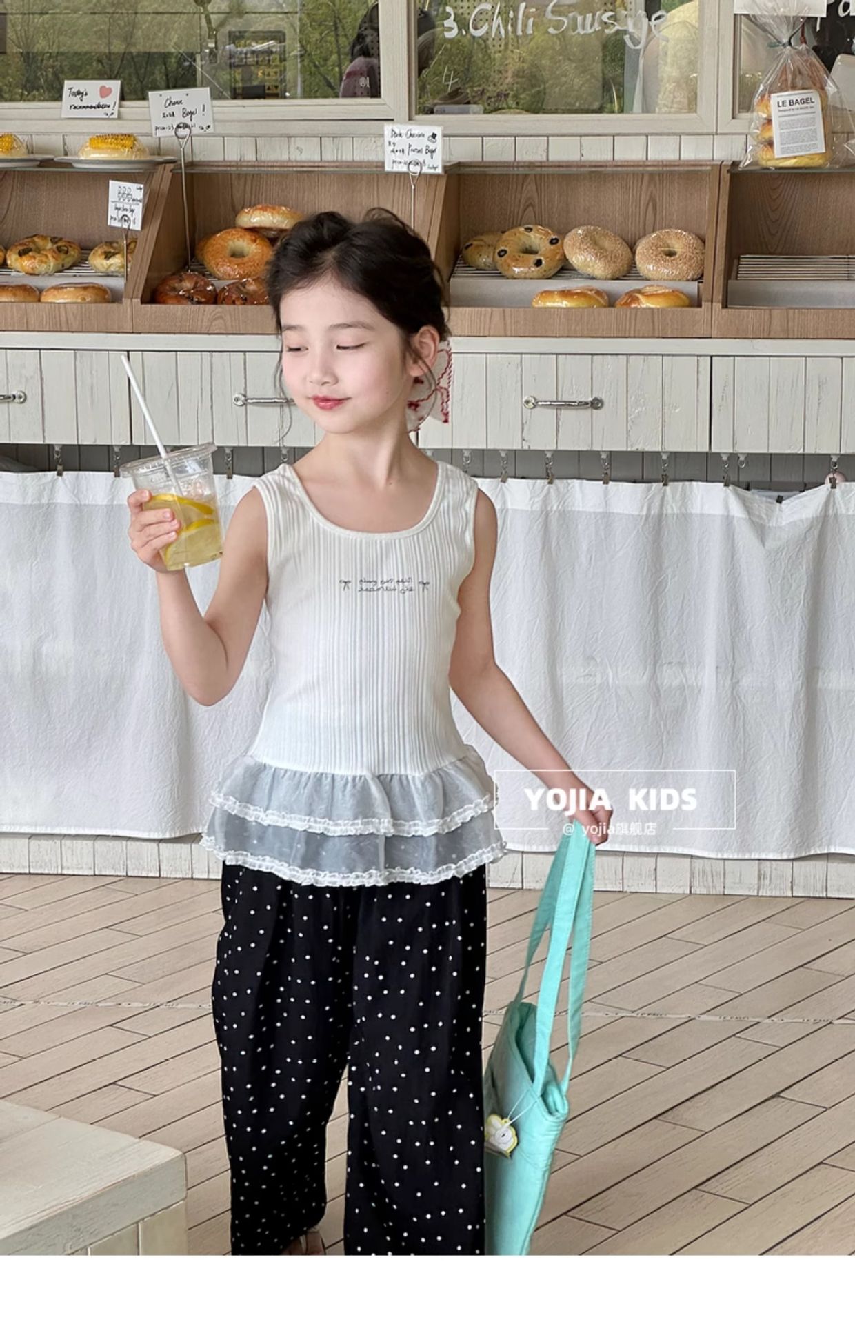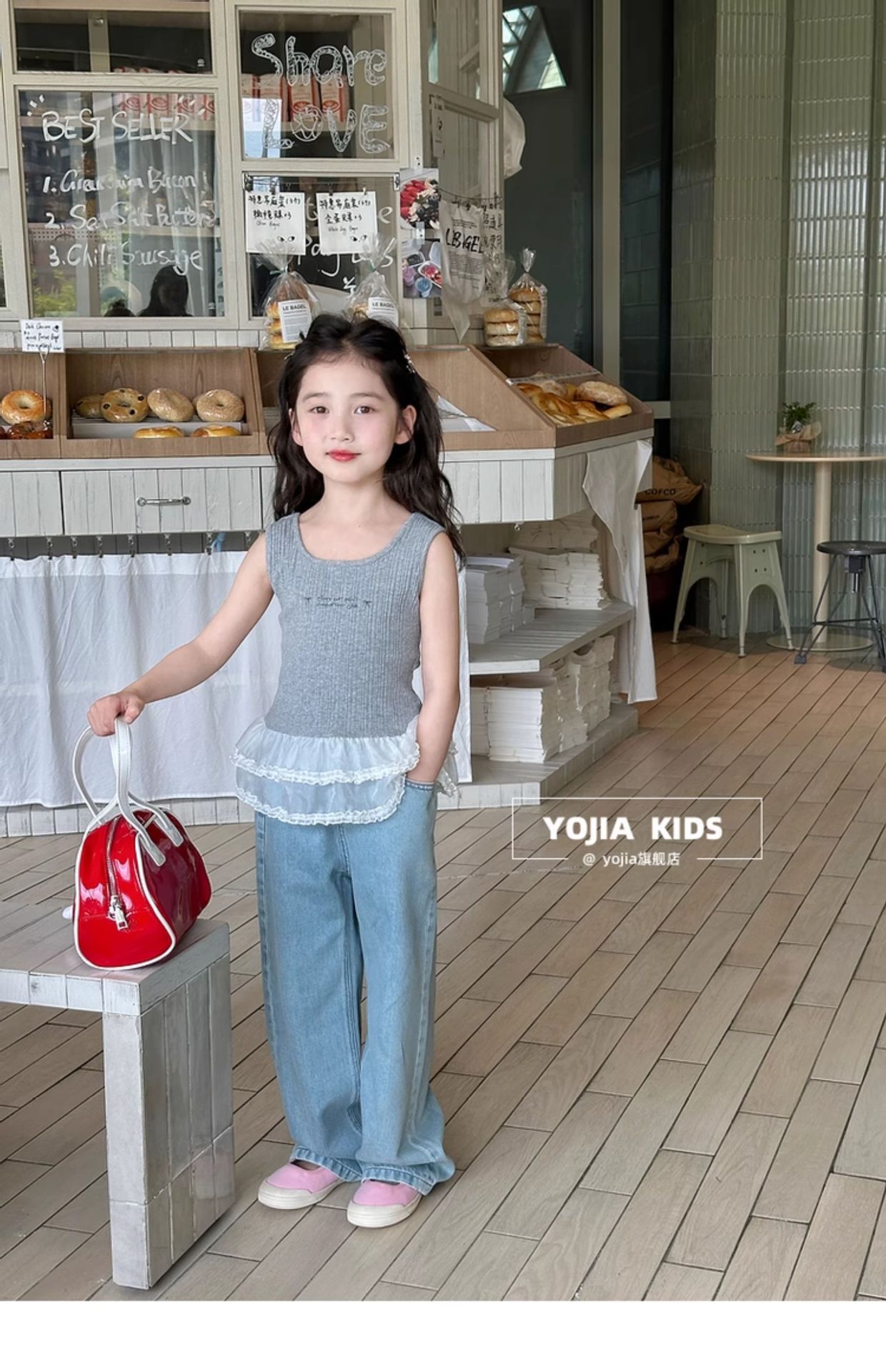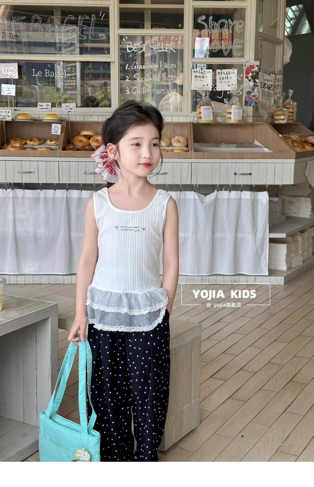 YOJIA 소녀 조끼 여름 2025 새로운 스타일 레이스 아동복 어린 소녀 콘돌 탑 아동복스토어 가기