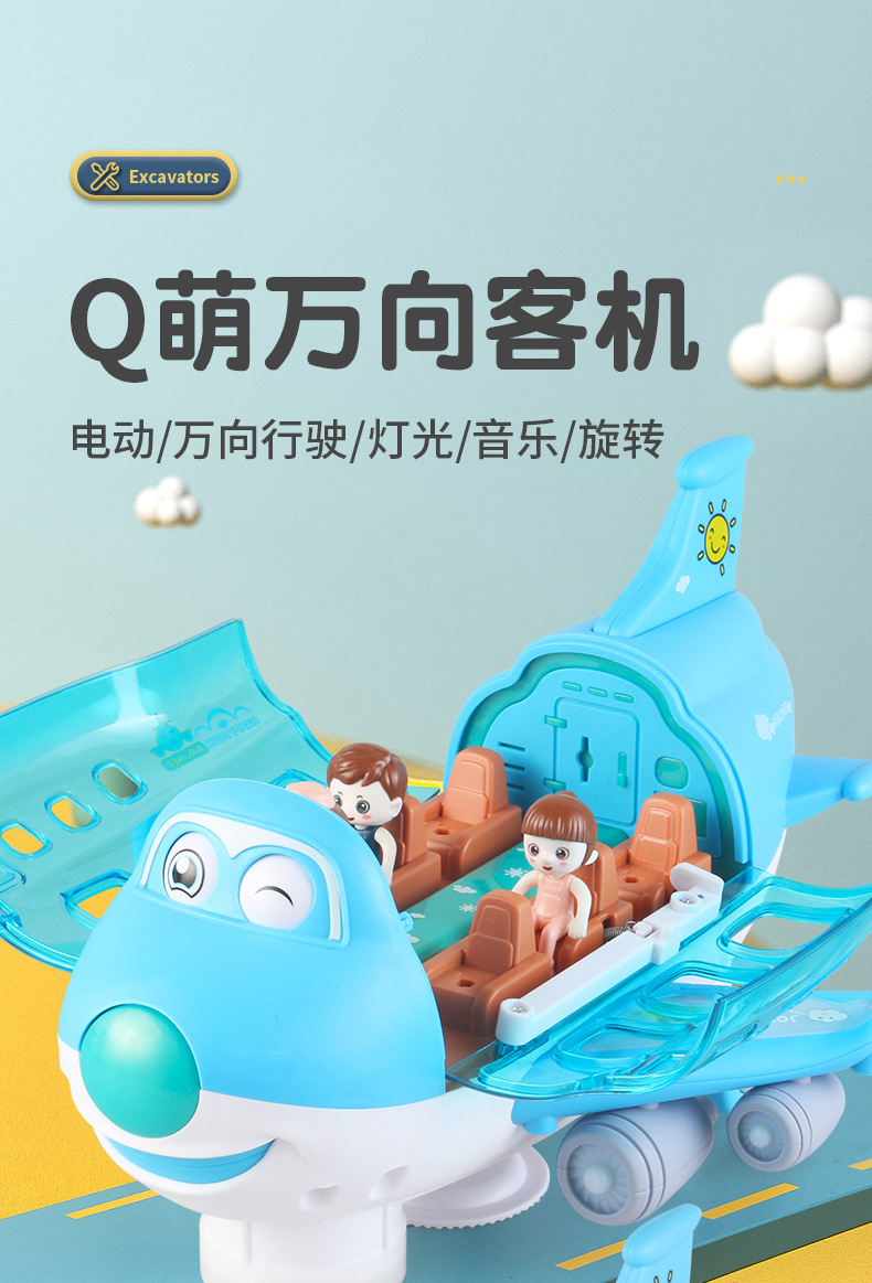 국경 간 어린이 전기 Q 귀여운 항공기 장난감 범용 조명 음악 360 ° 회전 비행기 야시장 도매스토어 가기