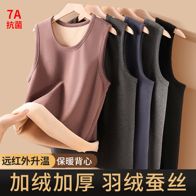 남성용 보온 조끼, 벨벳 안감, 두꺼운 이너웨어, 다운 실크 가을 겨울 남성 이너웨어 2025 신상스토어 가기