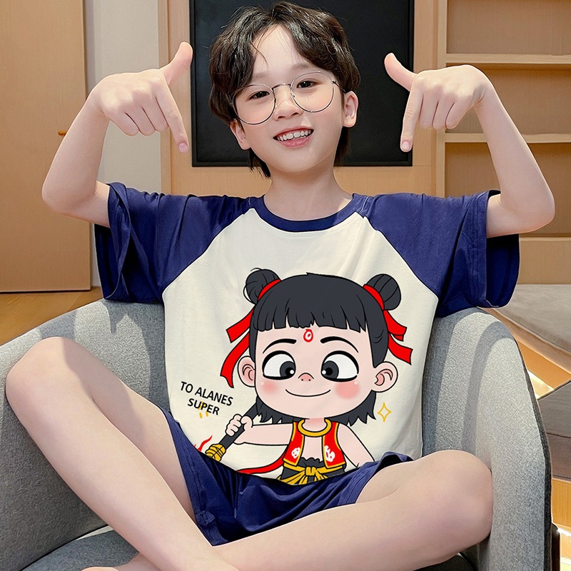 소년 잠옷 Taiyi 실제 소년 모달 반팔 여름 얇은 어린이 Nezha 큰 어린이 청소년 여름스토어 가기