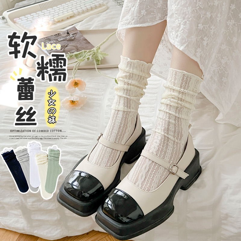 일본 로리타 종아리 양말 봄 여름 얇은 달콤한 종아리 양말 메쉬 통기성 양말 jk 대학 스타일 양말스토어 가기