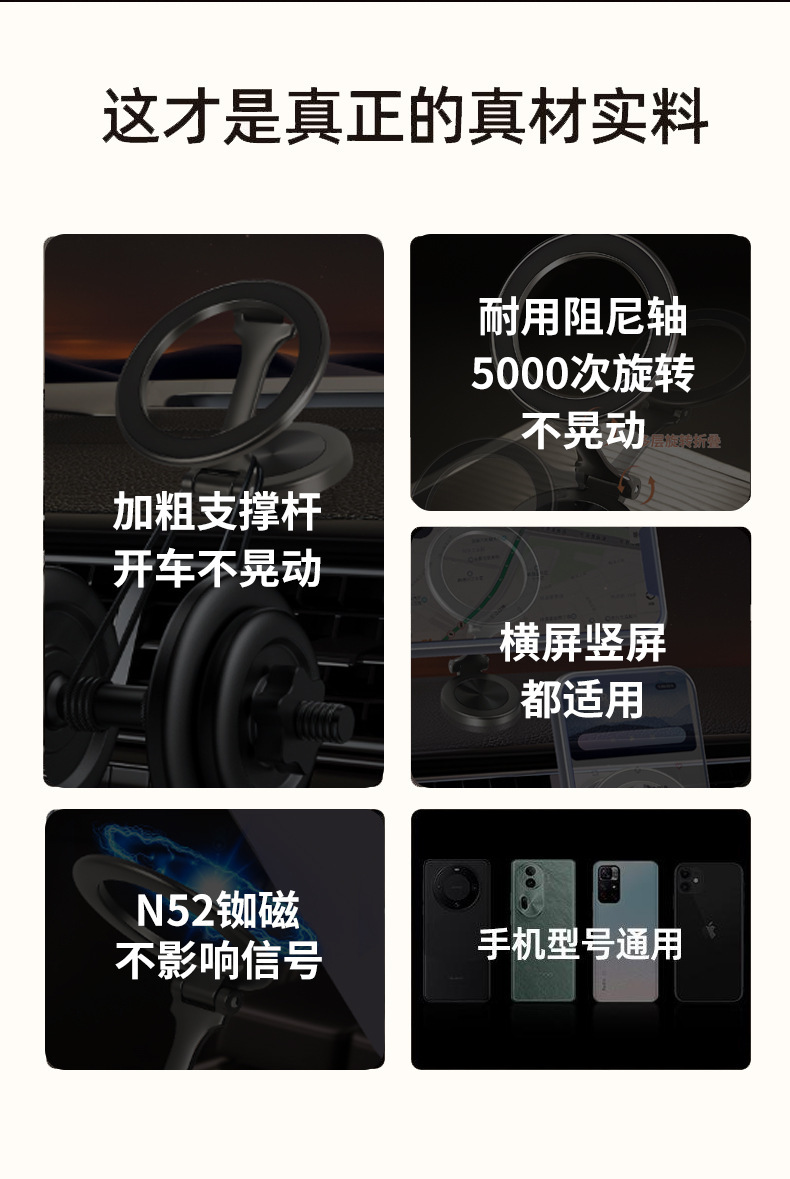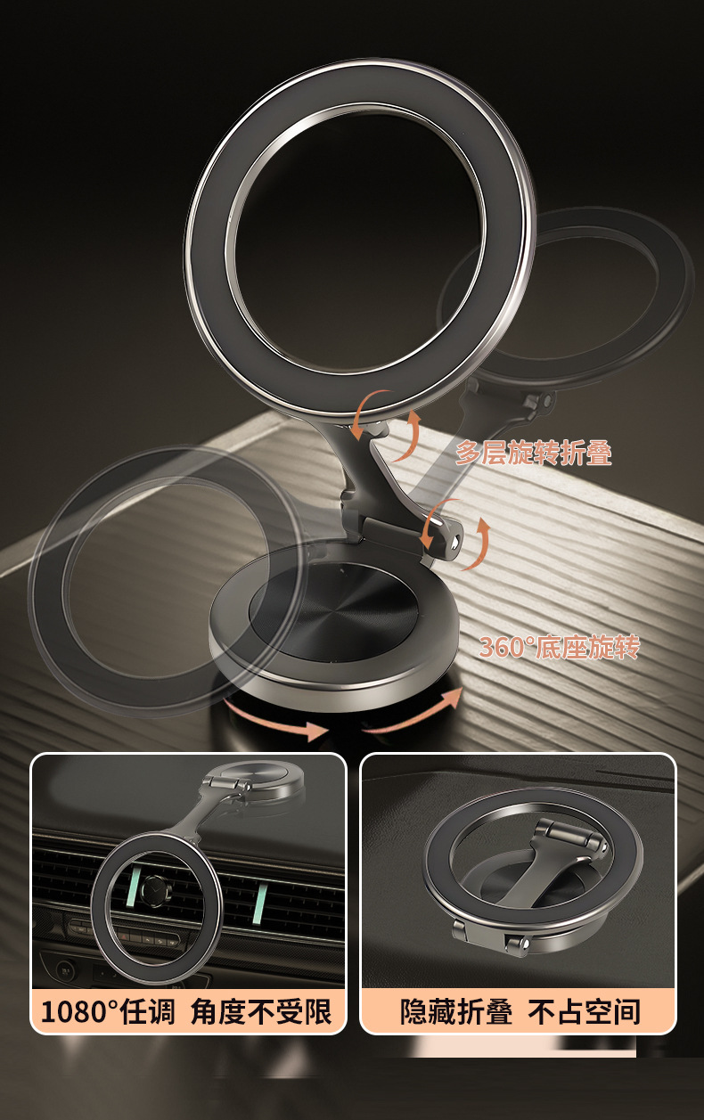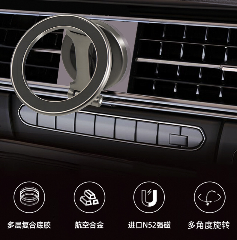 2024 새로운 자동차 휴대 전화 브래킷 자기 흡입 휴대 전화 무전기 범용 합금 브래킷 도매 총 색상 실버