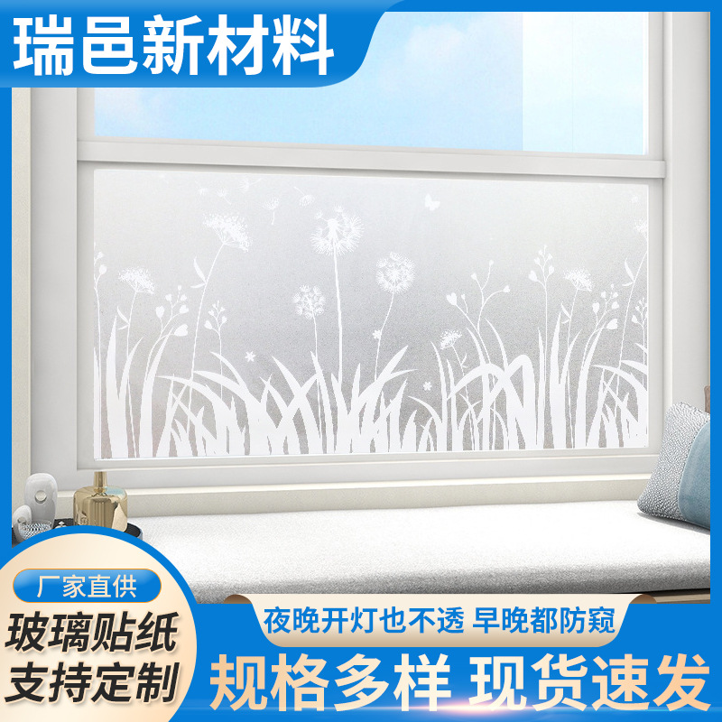 도매 정전기 젖빛 유리 스티커 잔디 민들레 욕실 개인 정보 보호 필름 빛 투과 창 태양 보호 및 단열 필름