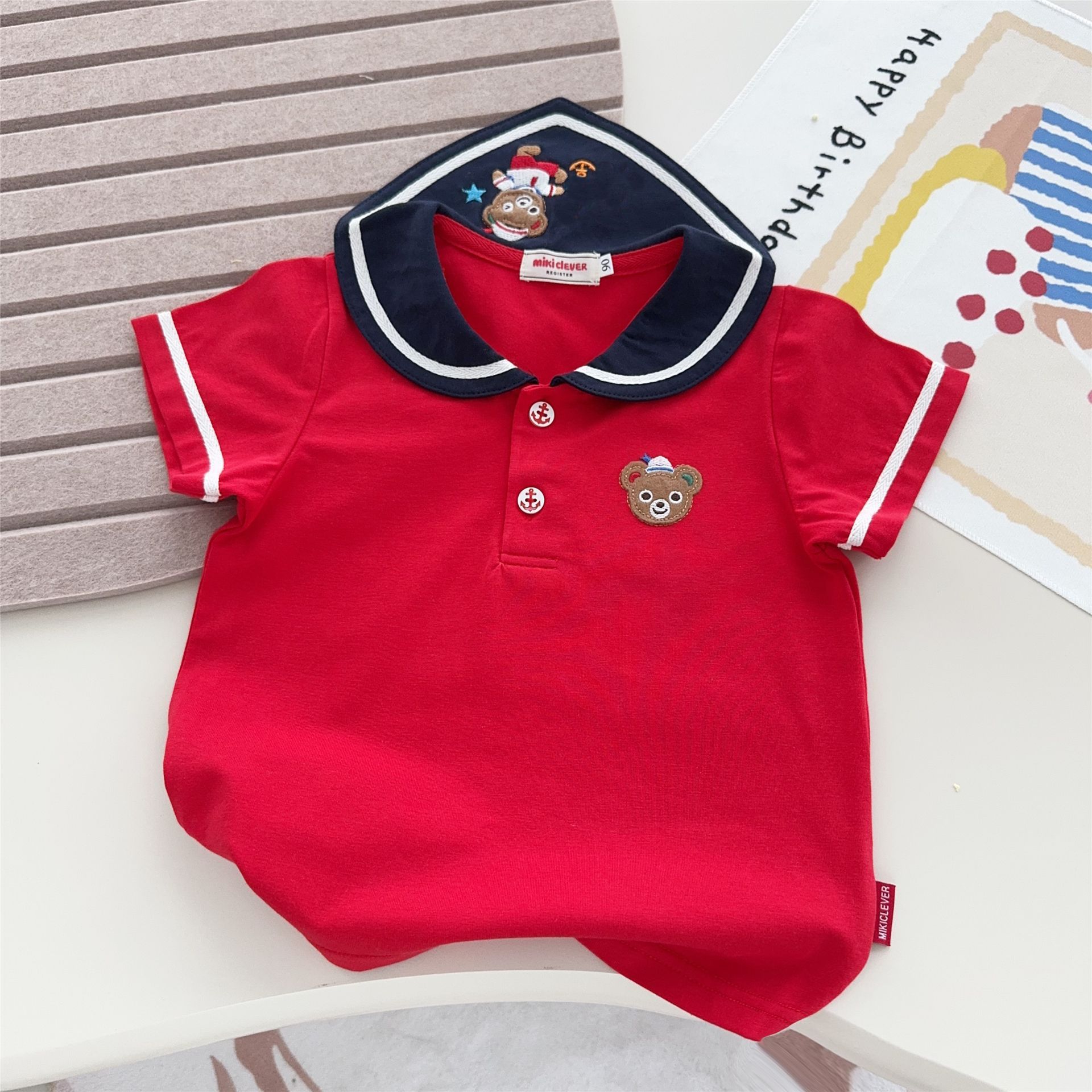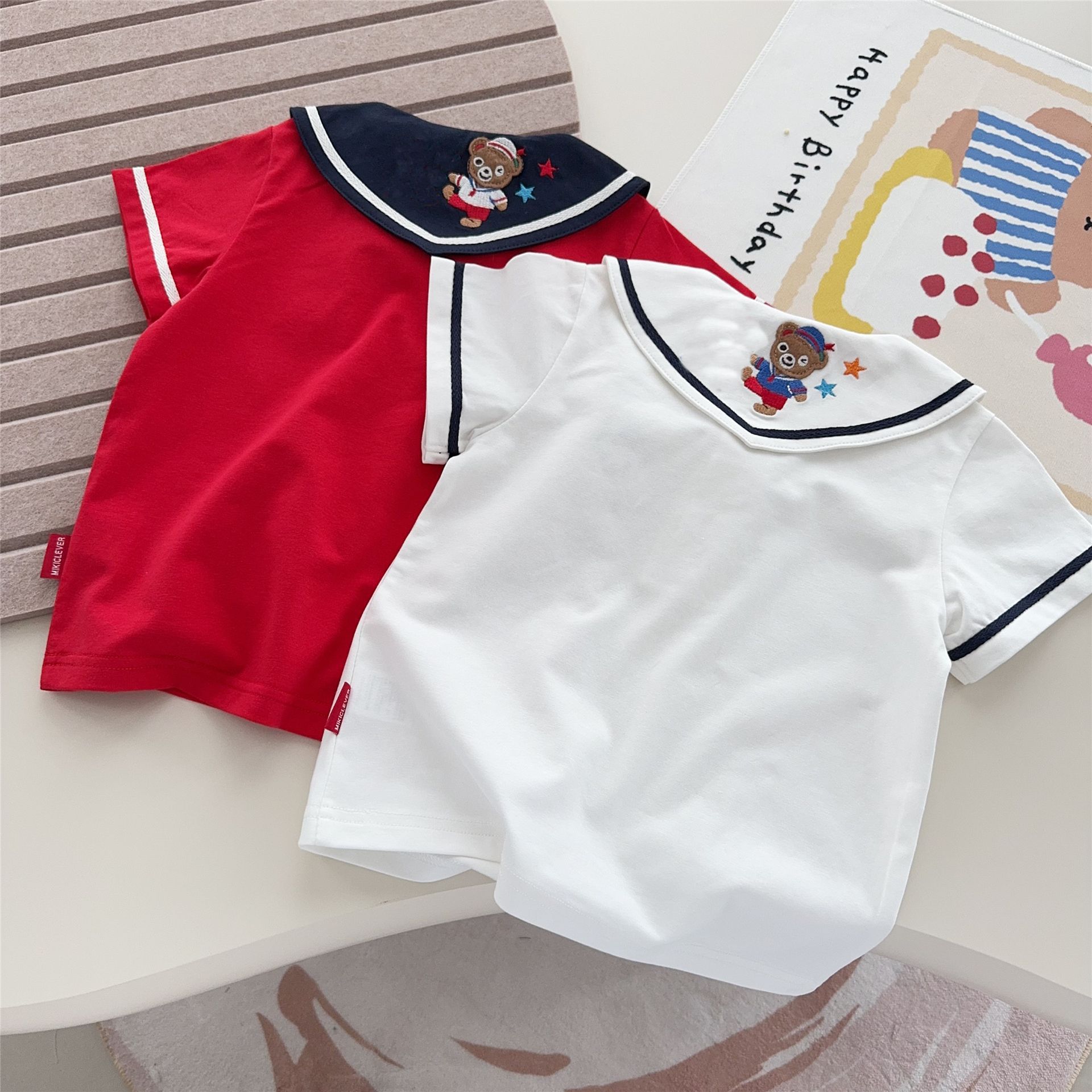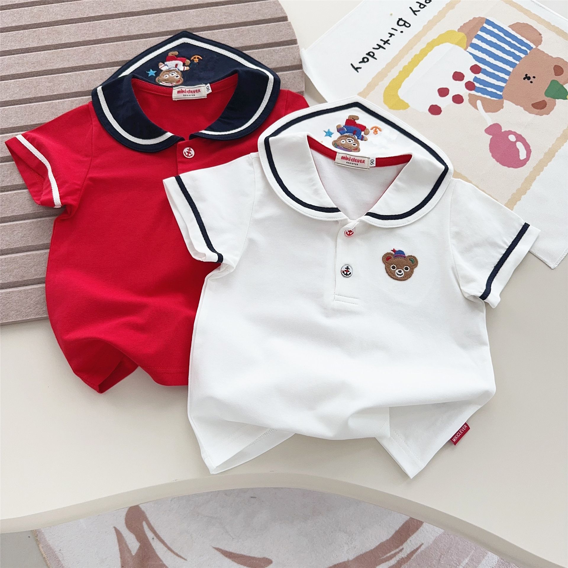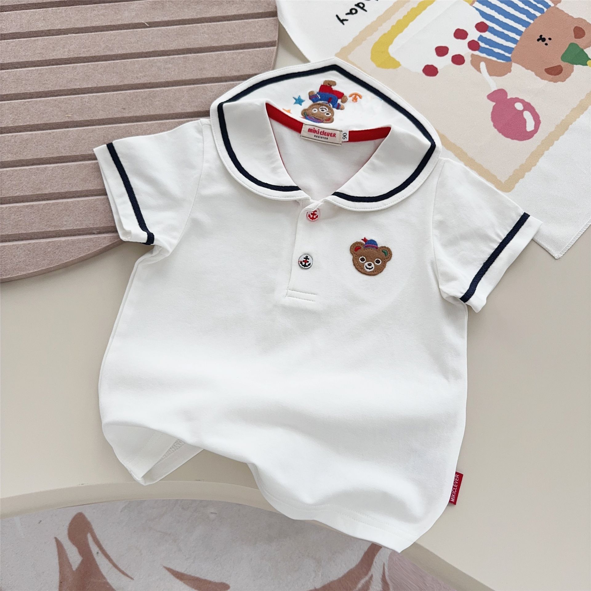 소년과 소녀 클래스 A 면화 셔츠 탑 25 여름 어린이 만화 수 놓은 셔츠 해상 곰 티셔츠 7070스토어 가기