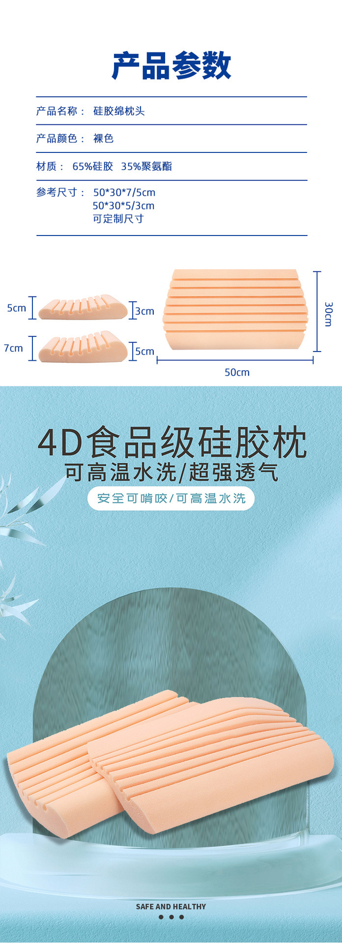 • (실리콘 함량 70%) 베갯잇이 없는 피부색 베개 코어