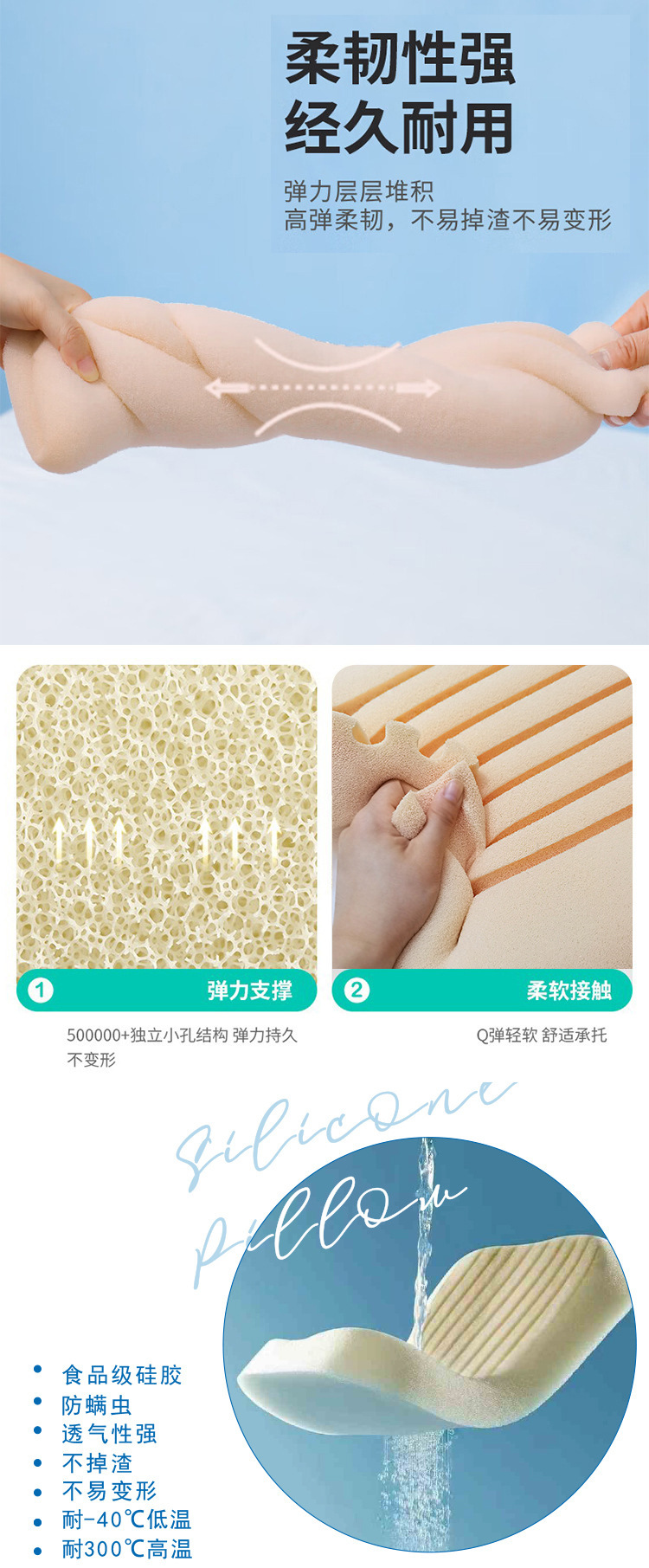 제조 업체 업그레이드 된 실리콘 스폰지 베개 빨 수있는 여름 통기성 어린이 성인 라텍스 면화 베개 코어 도매