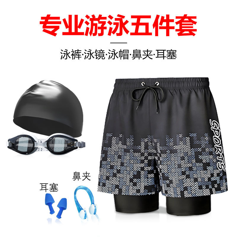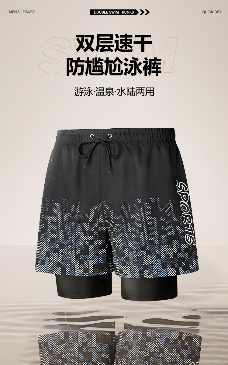 남자 비치 바지 수영 필수 용품 온천 안티-당황 빠른 건조 더블 레이어 성인 하이 엔드 5 포인트 스포츠 수영 트렁크스토어 가기