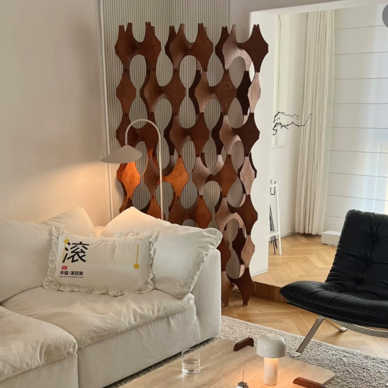 자작나무 단단한 나무 스크린 크리 에이 티브 골동품 스타일 거실 스크린 오션 보드 전체 마름모 원목 색상 마름모 다크 브라운
