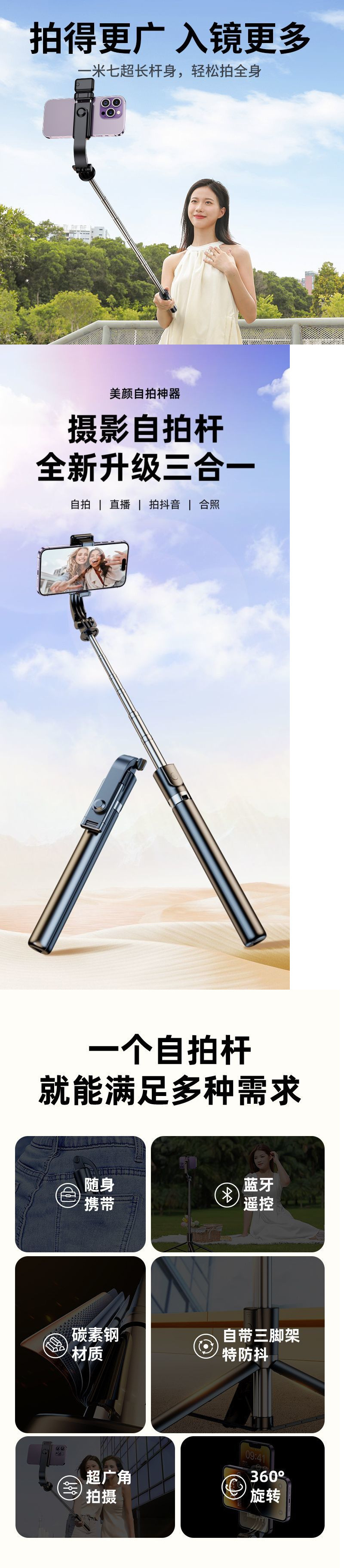 블루투스 셀카봉 삼각대, 다기능 셀카 라이브 방송, 여행용 휴대폰 보조광, 휴대용 및 플로어스탠딩 범용스토어 가기