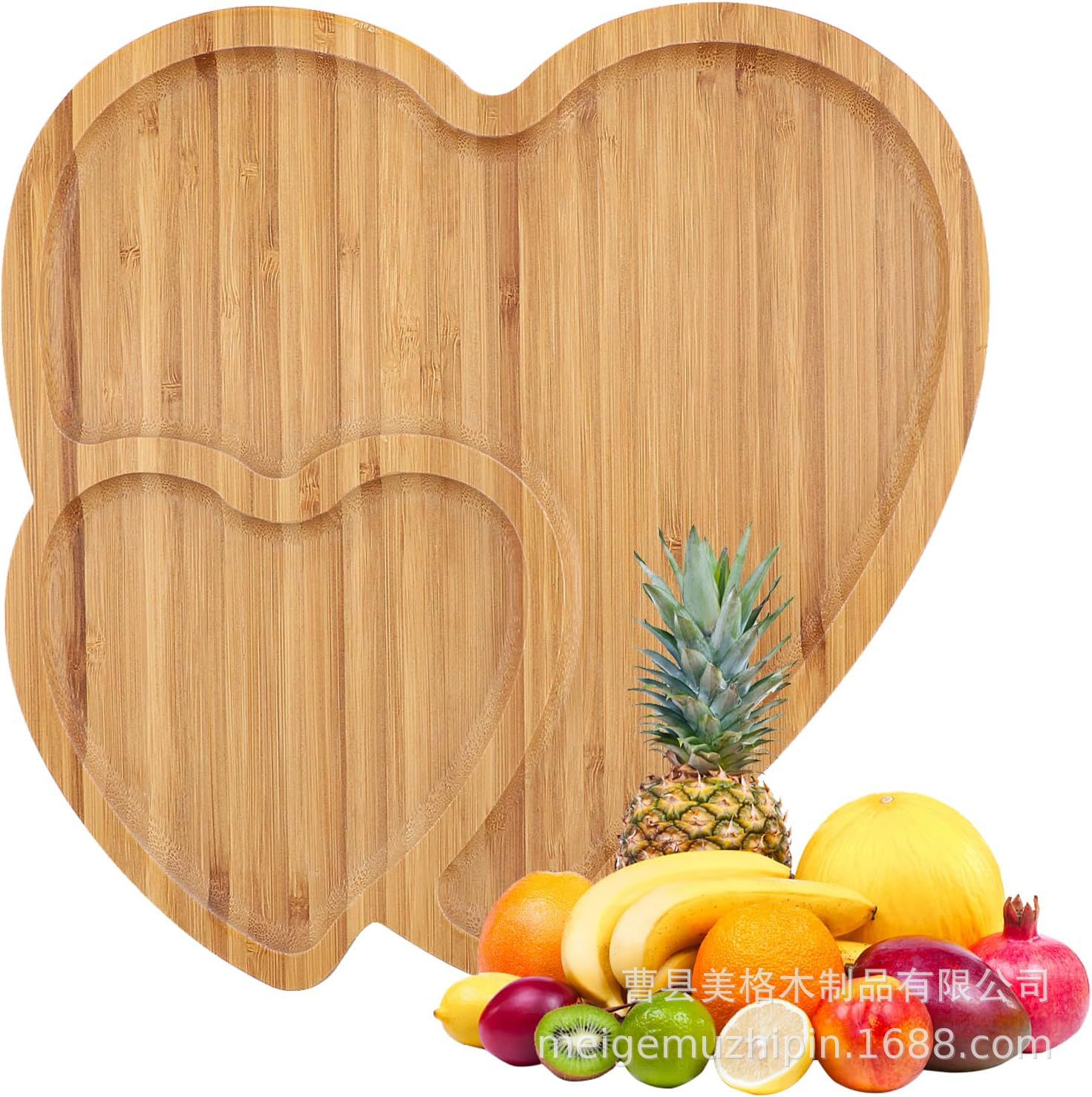국경 간 나무 사랑 트레이 하트 모양의 구획 대나무 나무 디너 트레이 주방 식기 과일 치즈 나무 트레이 단단한 나무 트레이