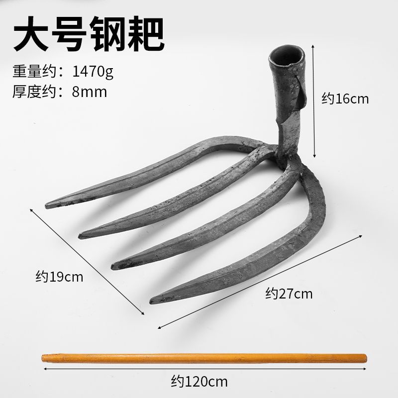두꺼운 철제 갈퀴, 망간강 갈퀴, 갈퀴, 가정용 채소 재배, 흙 뒤집기, 흙 풀기, 농기구, 4개의 치아가 있는 갈퀴 및 잡초 제거 도구