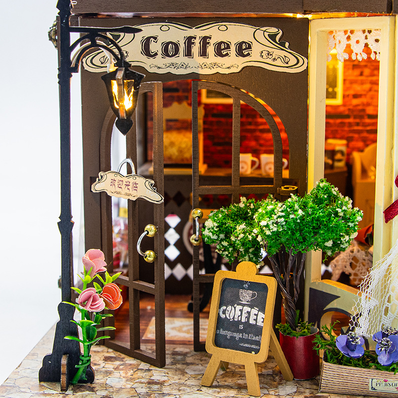 더블 레이어 가든 하우스 빌라 미니 diy 수제 작은 집 인형 캐빈 스트리트 뷰 3D 건물 모델 조립스토어 가기