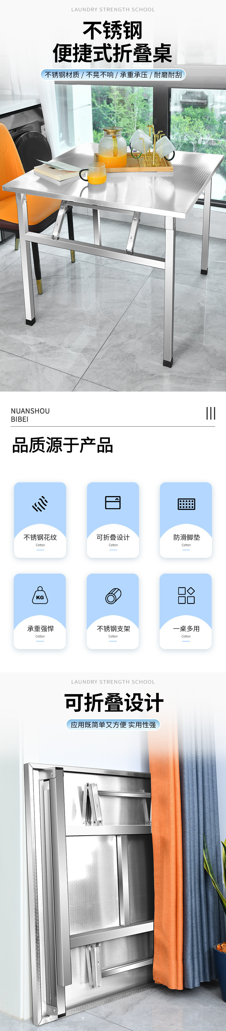 스테인레스 스틸 접이식 테이블 식탁 직사각형 가정용 식탁 야간 시장 바베큐 뜨거운 냄비 상업용 휴대용 스톨 테이블