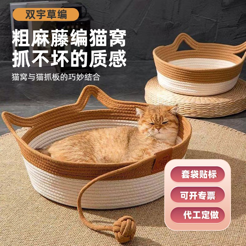 사계절 사용 가능한 등나무 고양이 둥지, 겨울철 고양이용품, 수면매트, 개집, 애완동물 침대, 안전한 둥지스토어 가기