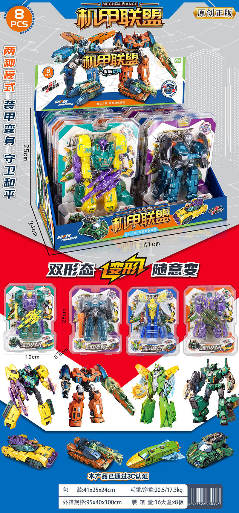 • 합금 변형 메카 자동차 모델(디스플레이 상자당 12발)