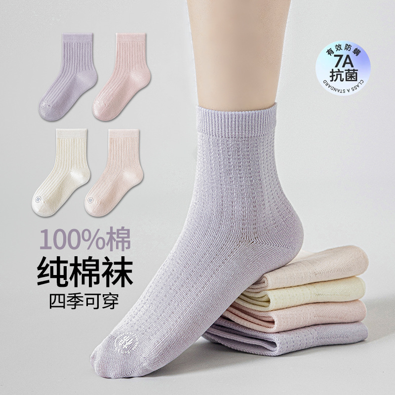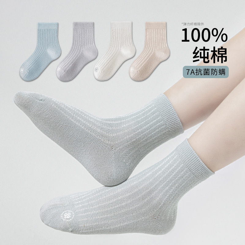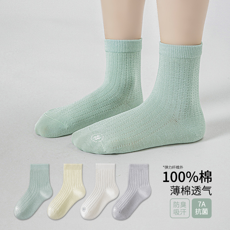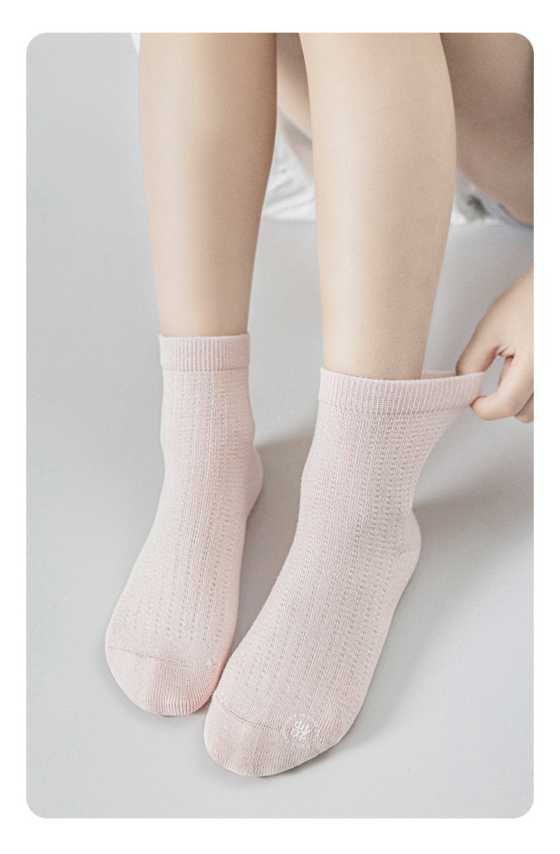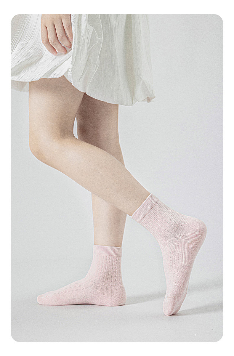 소녀 양말 얇은 봄과 여름 순수한 색 땀 흡수 통기성 냄새 방지 메쉬 양말 대형 어린이 및 소녀를위한 뼈없는 곡선 중간 튜브스토어 가기