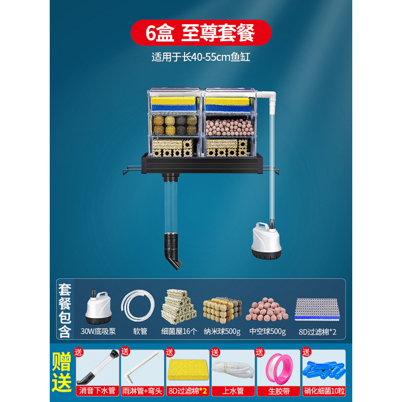 • 블랙 6박스 [단일 튜브 슈프림 패키지] + 필터 재료 + 하단 흡입 펌프 + 사은품 패키지