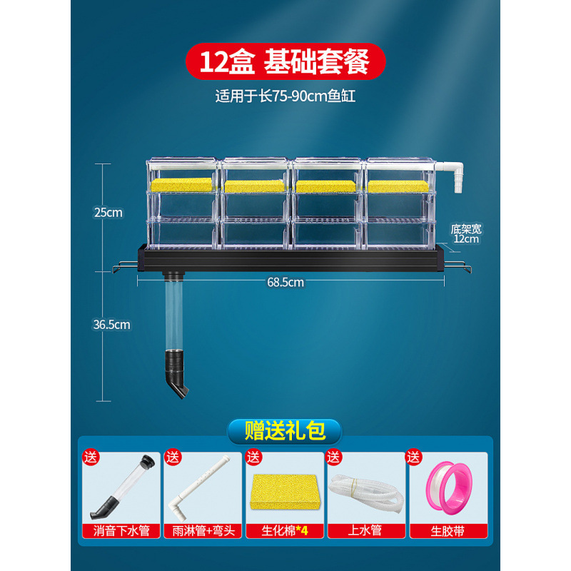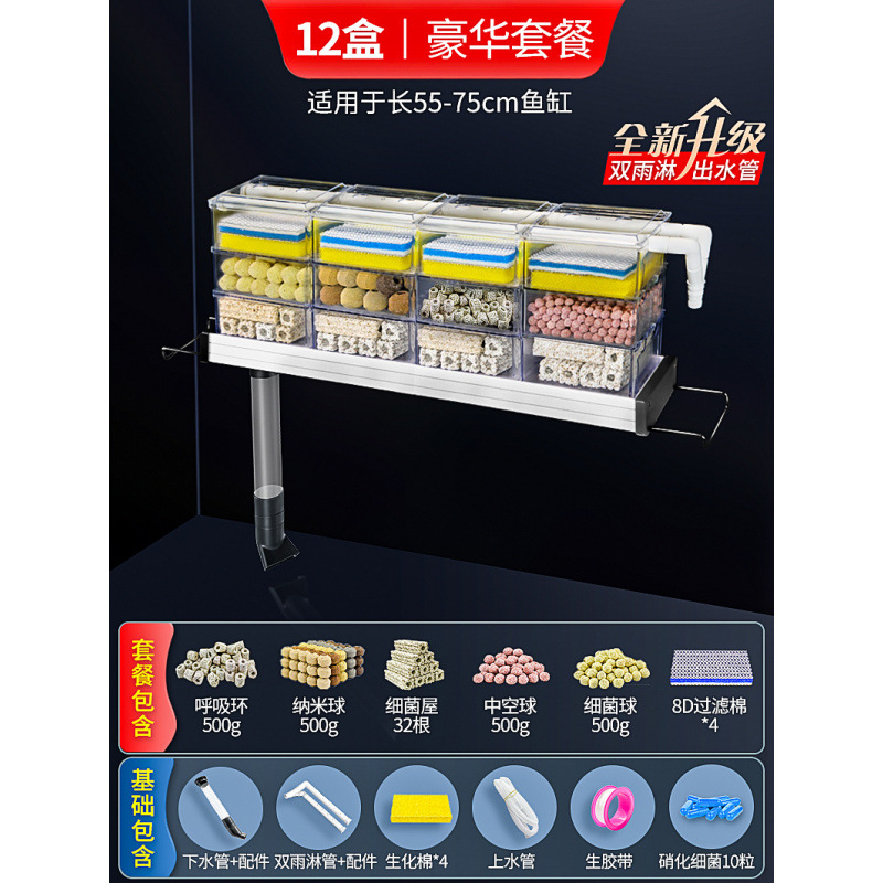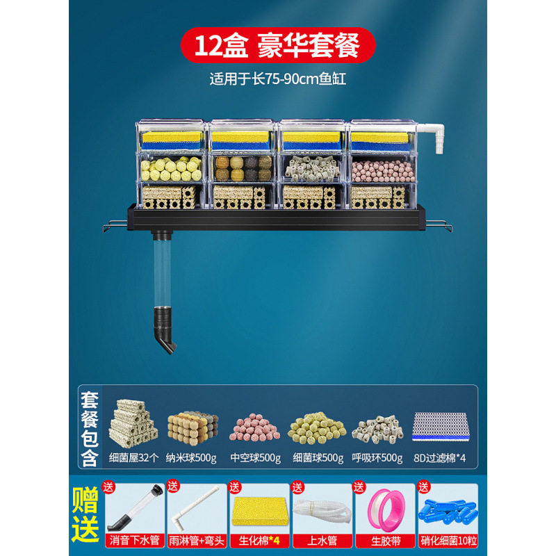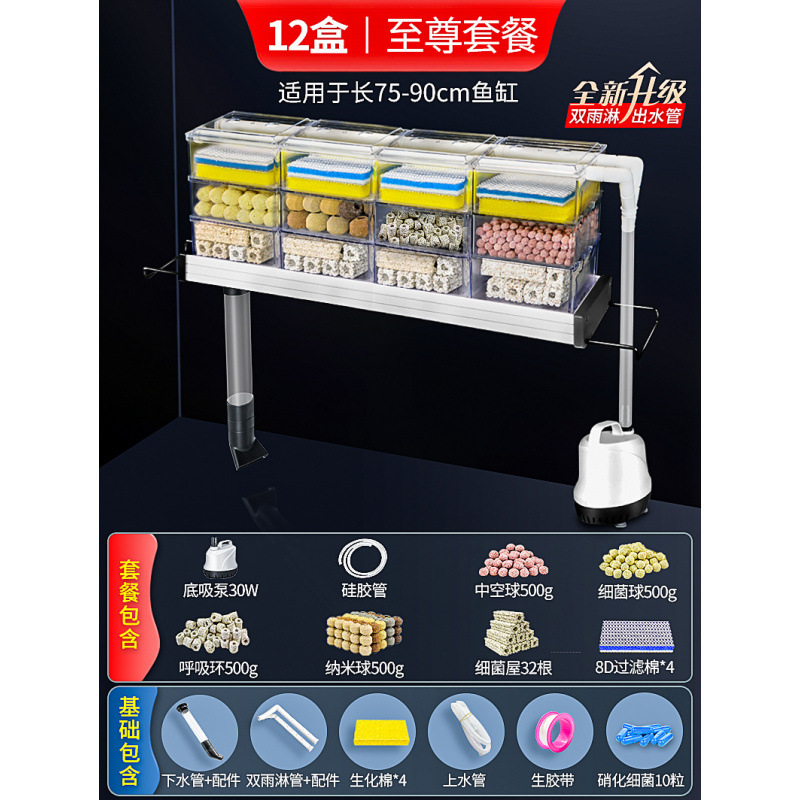 • 블랙 12박스 [단일 튜브 슈프림 패키지] + 필터 재료 + 하단 흡입 펌프 + 무료 선물 패키지