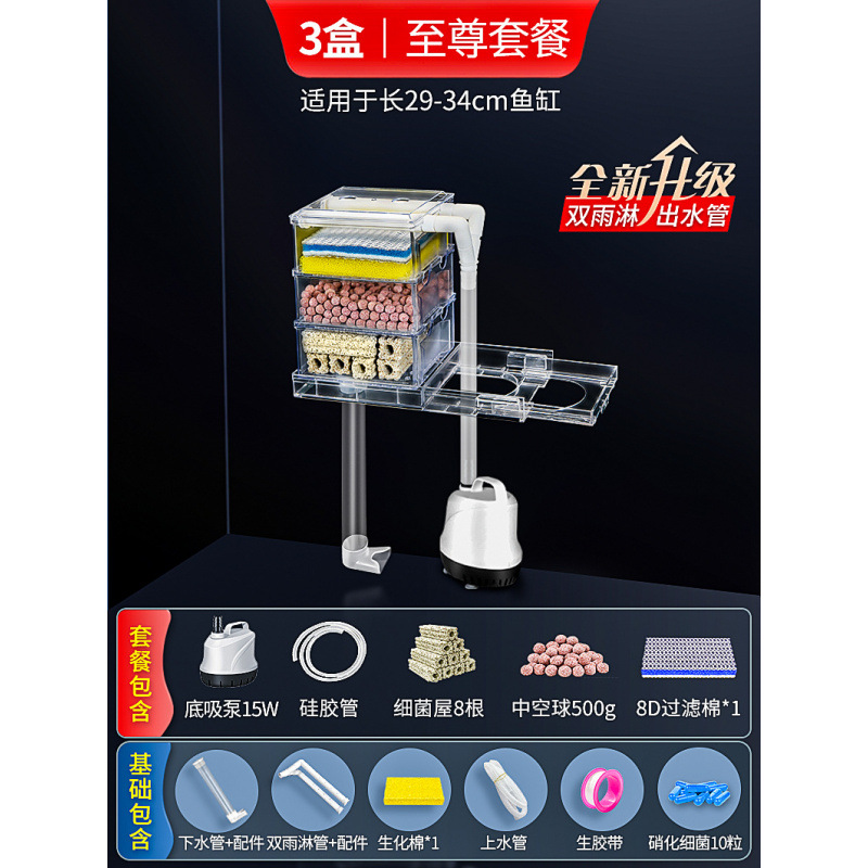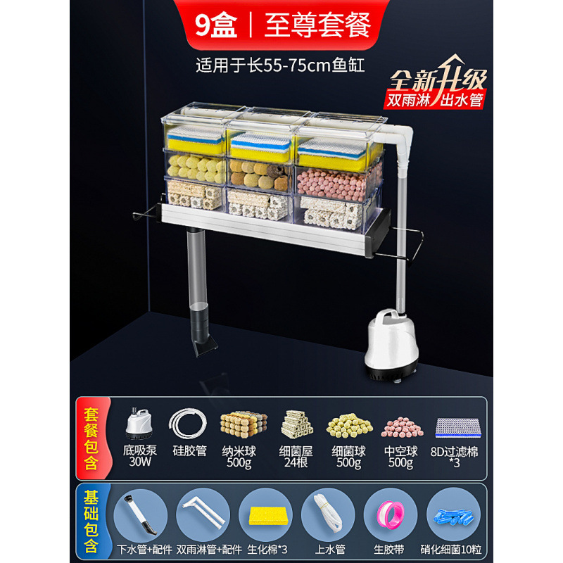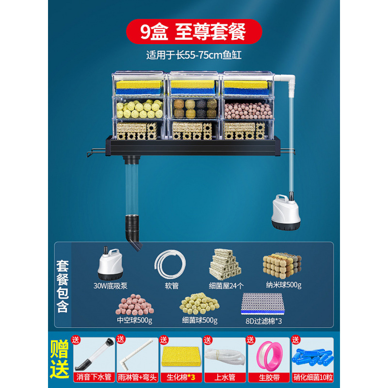 • 검정색 9박스 [단일 튜브 슈프림 패키지] + 필터 재료 + 하단 흡입 펌프 + 무료 선물 패키지