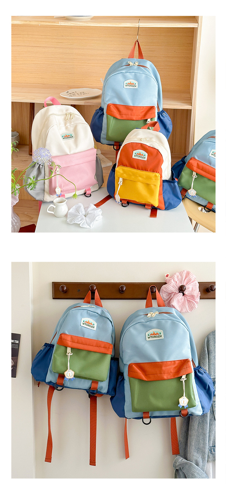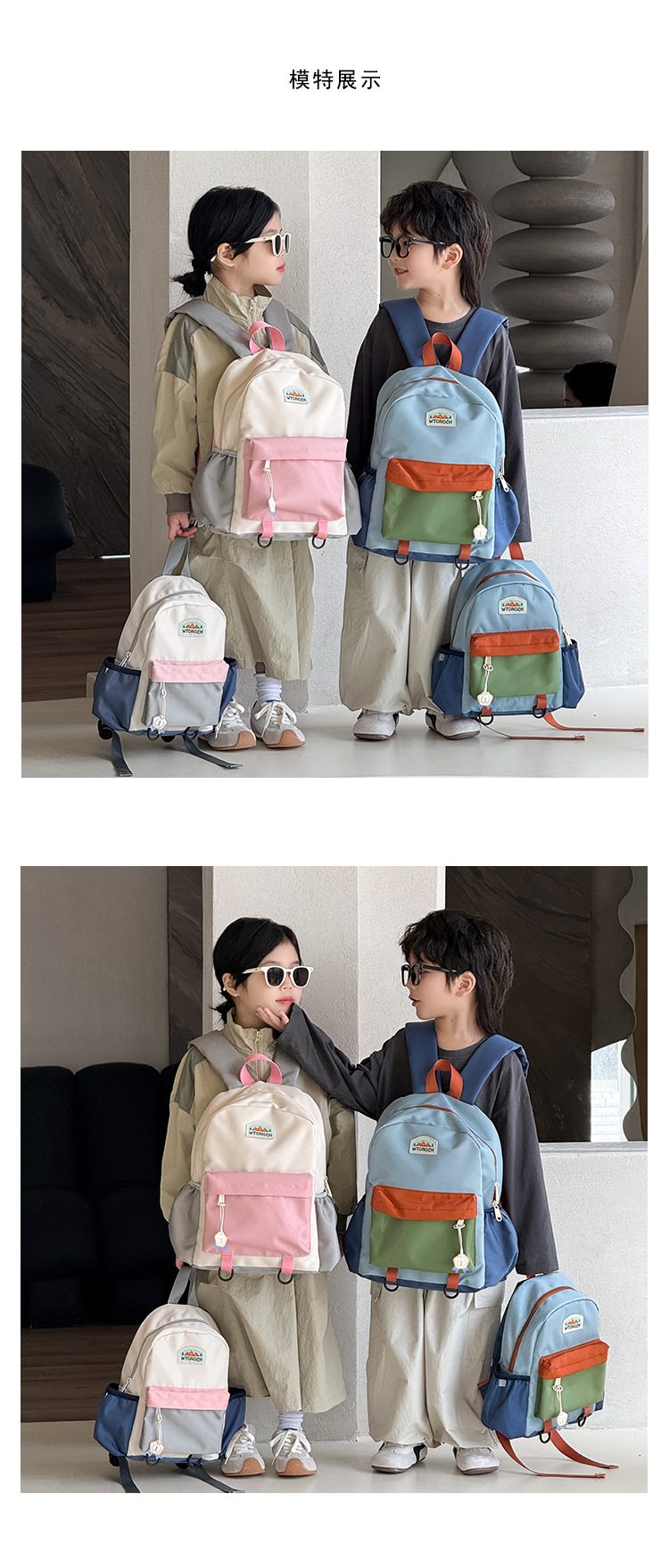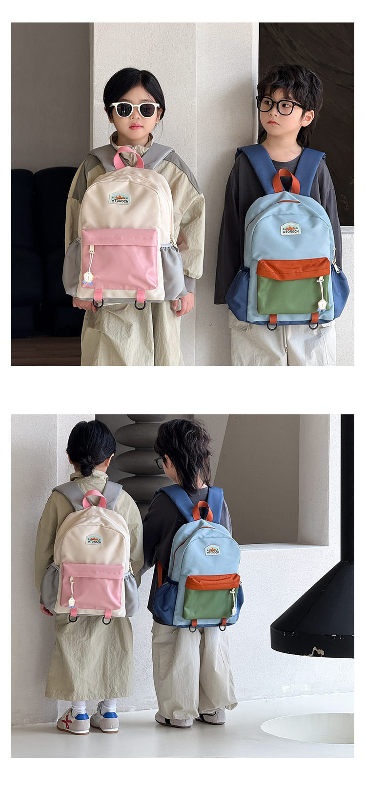 신형 한국식 콘트라스트 컬러 어린이 배낭 귀여운 유치원 스쿨백 소년 · 여학생 레저 경량 여행 배낭