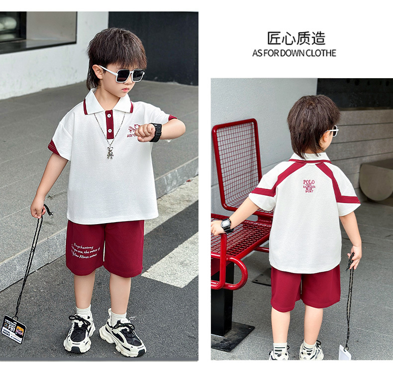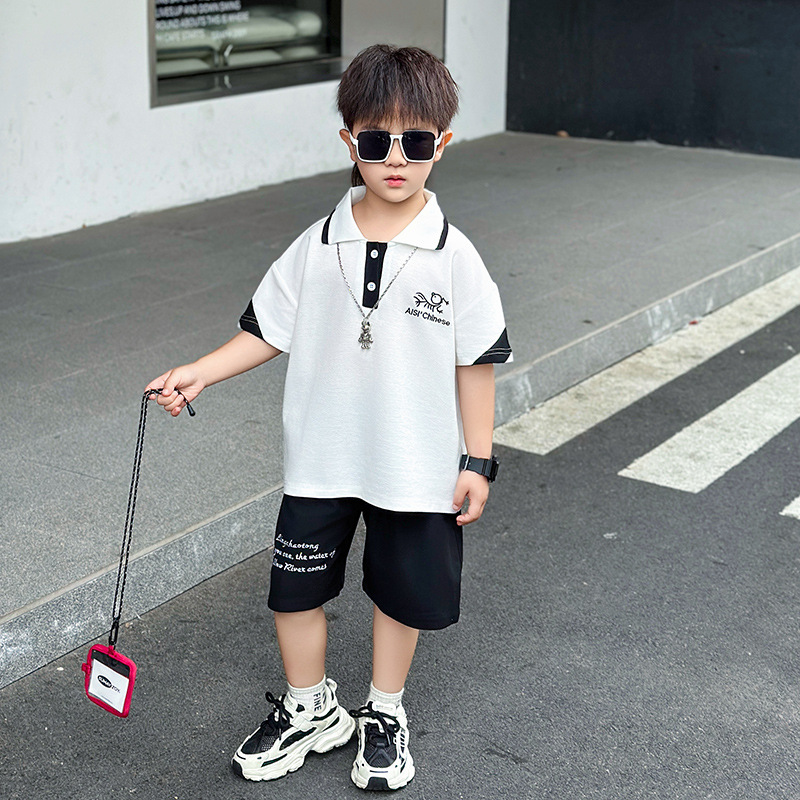 남자들의 여름 반팔 세트 2025 새로운 중대형 어린이 스포츠 소년 어린이 여름 폴로 셔츠 투피스 유행 세트
