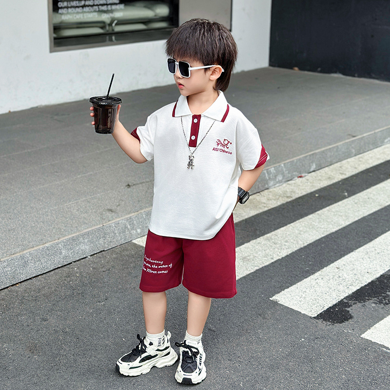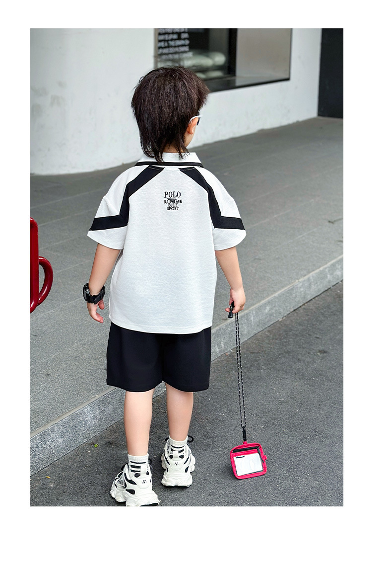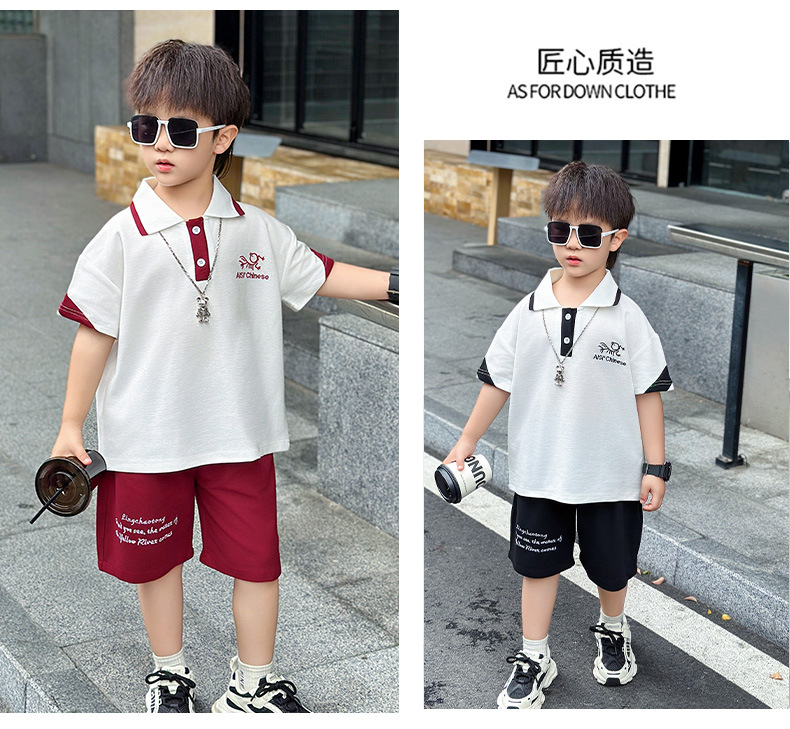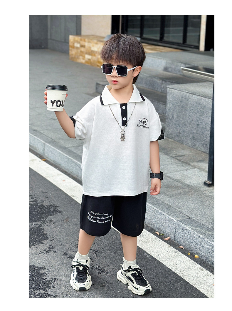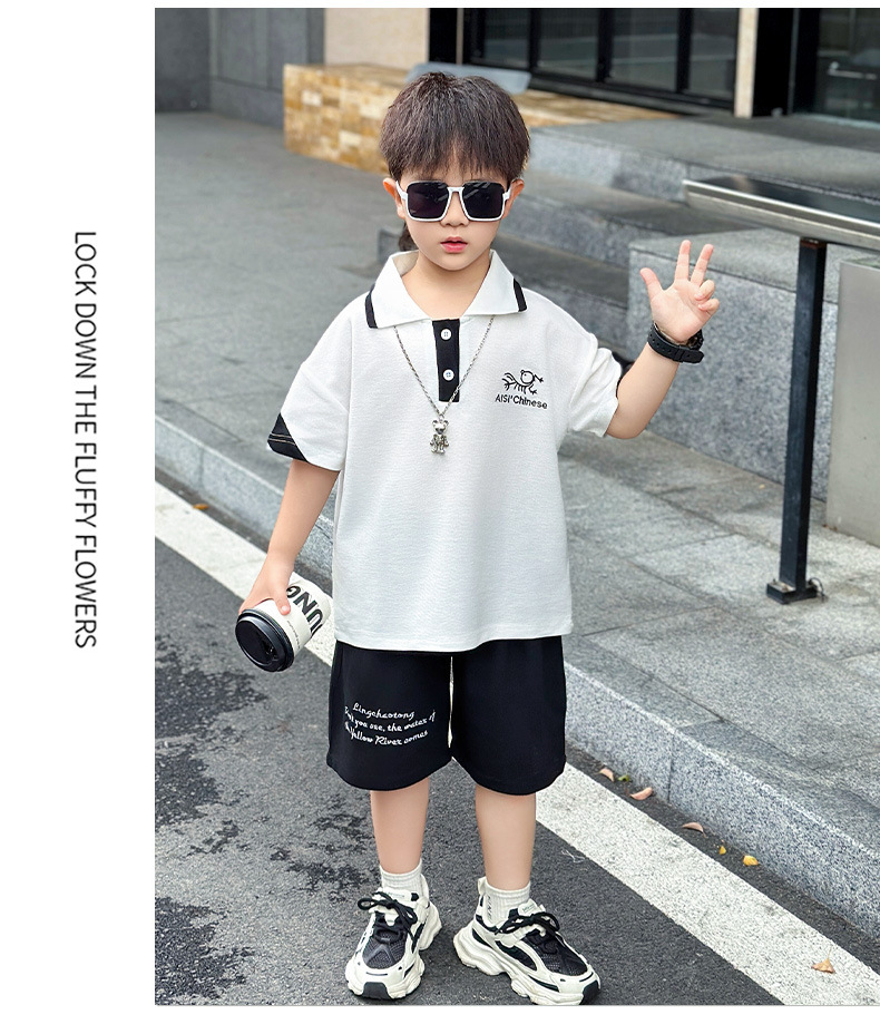 남자들의 여름 반팔 세트 2025 새로운 중대형 어린이 스포츠 소년 어린이 여름 폴로 셔츠 투피스 유행 세트스토어 가기