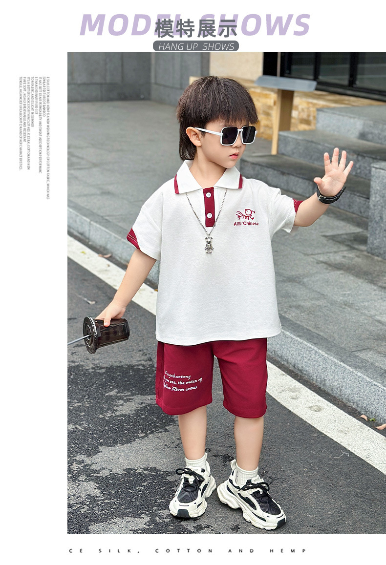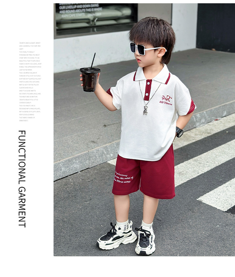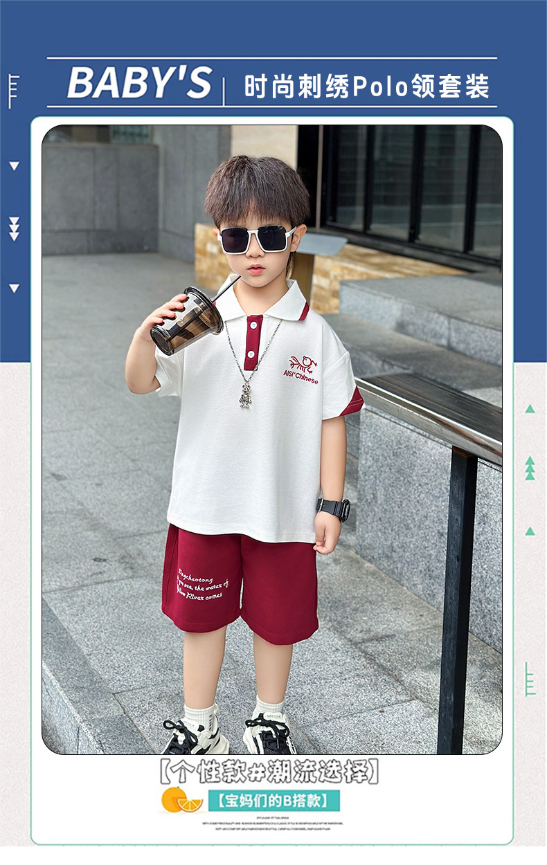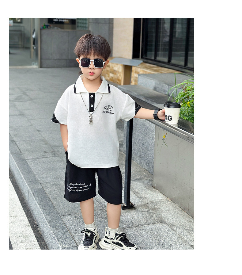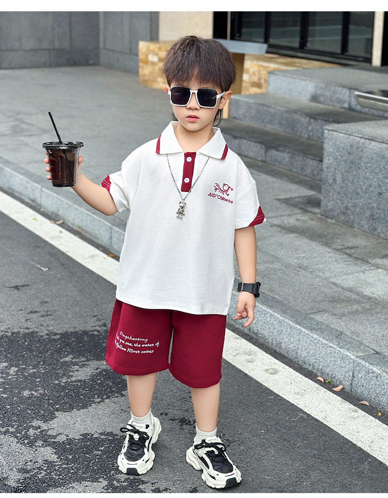 남자들의 여름 반팔 세트 2025 새로운 중대형 어린이 스포츠 소년 어린이 여름 폴로 셔츠 투피스 유행 세트스토어 가기