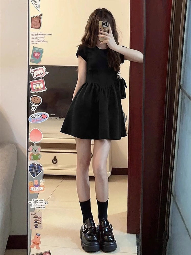 프랑스 헵번 스타일 블랙 원피스 어린이 여름 2025 새로운 도착 작은 검은 치마 타이트 허리 슬리밍 스커트