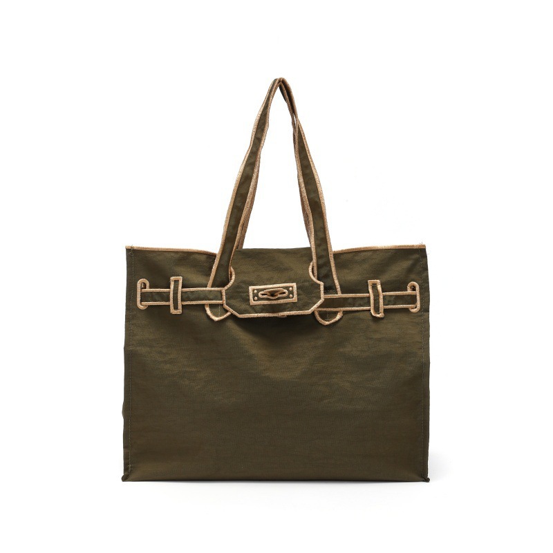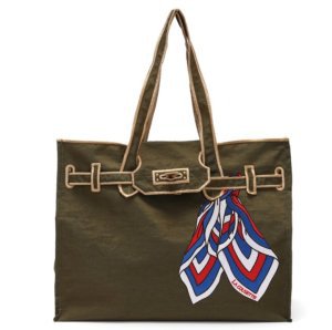 • 밀리터리 그린 실크 스카프 매듭 토트백
