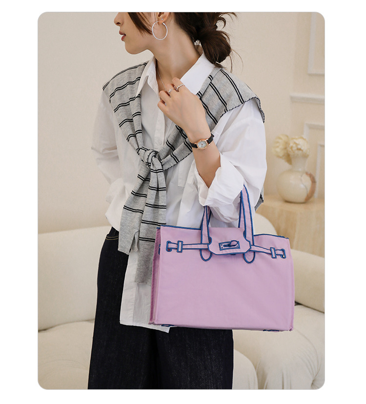 • 라이트 퍼플 실크 스카프 매듭 토트 백