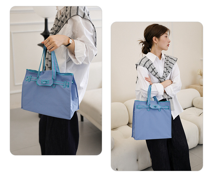 • 라이트 블루 실크 스카프 매듭 토트 백