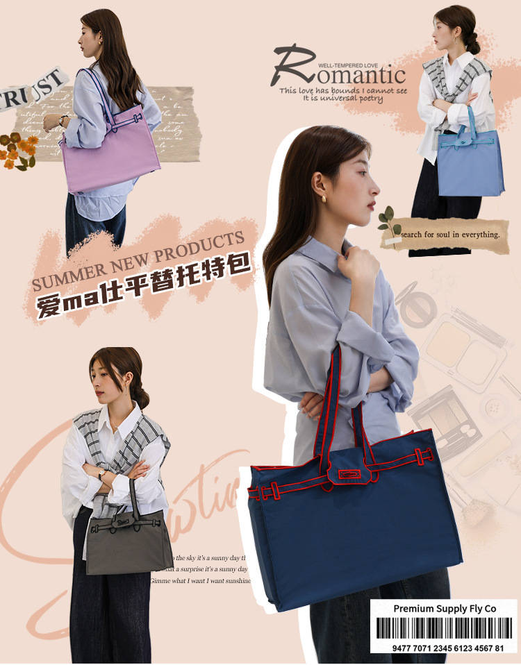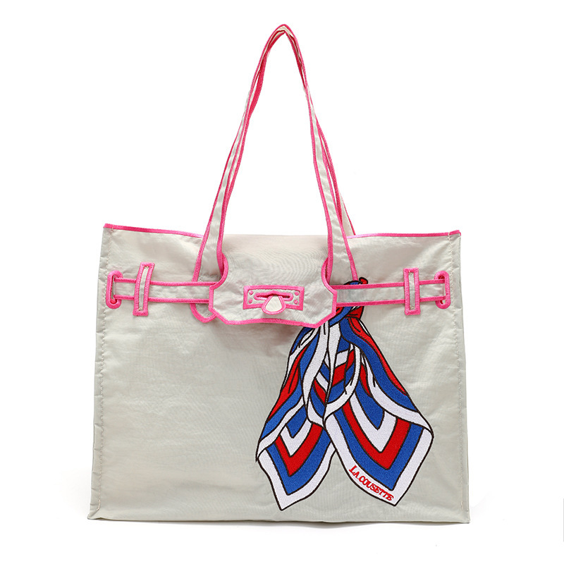 lacousette 일본 자수 친환경 가방 쇼핑백 나비 나일론 토트 백 휴대용 크로스 바디 숄더백