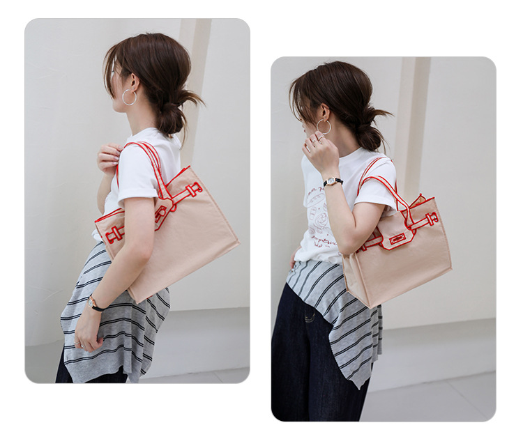 lacousette 일본 자수 친환경 가방 쇼핑백 나비 나일론 토트 백 휴대용 크로스 바디 숄더백스토어 가기