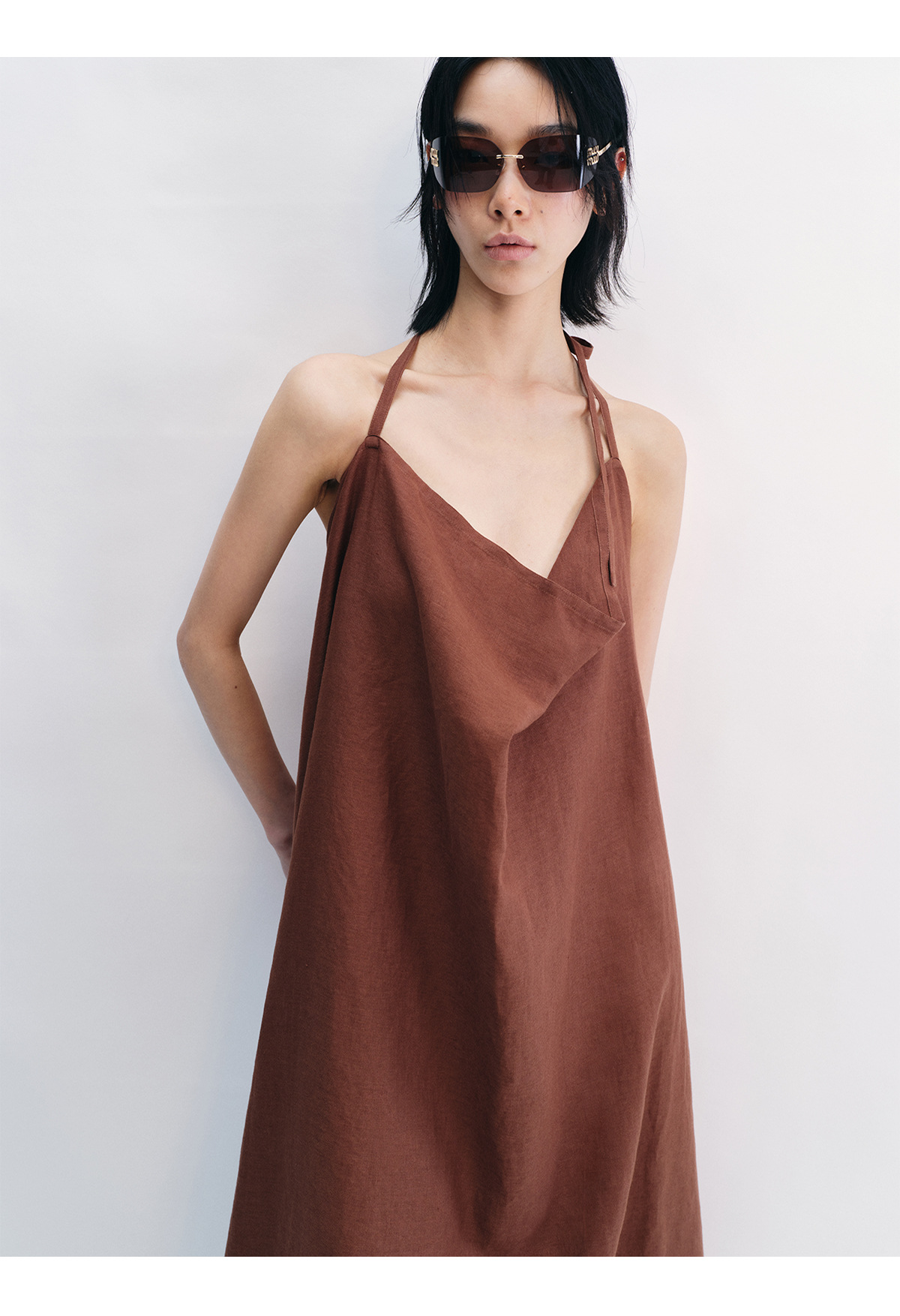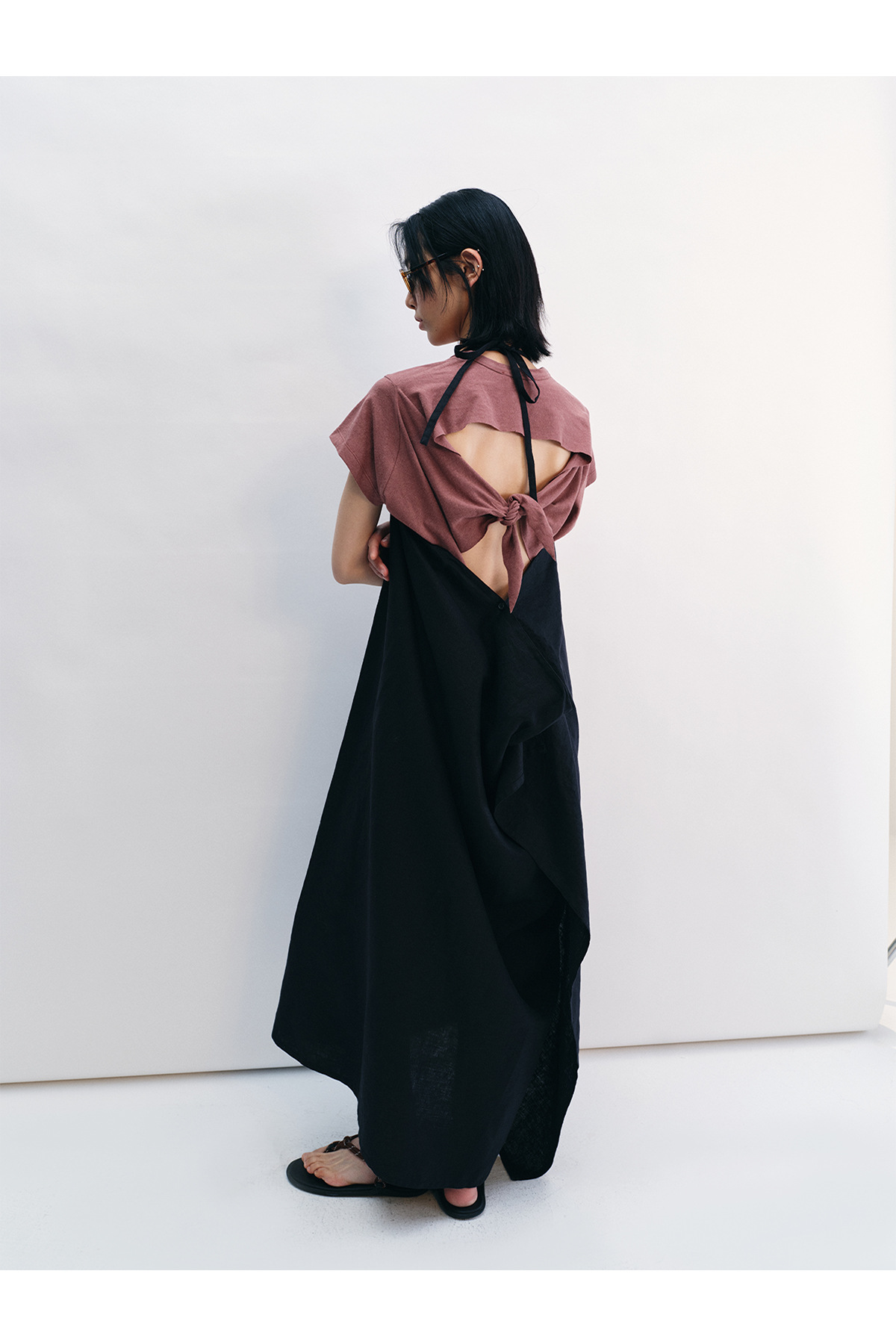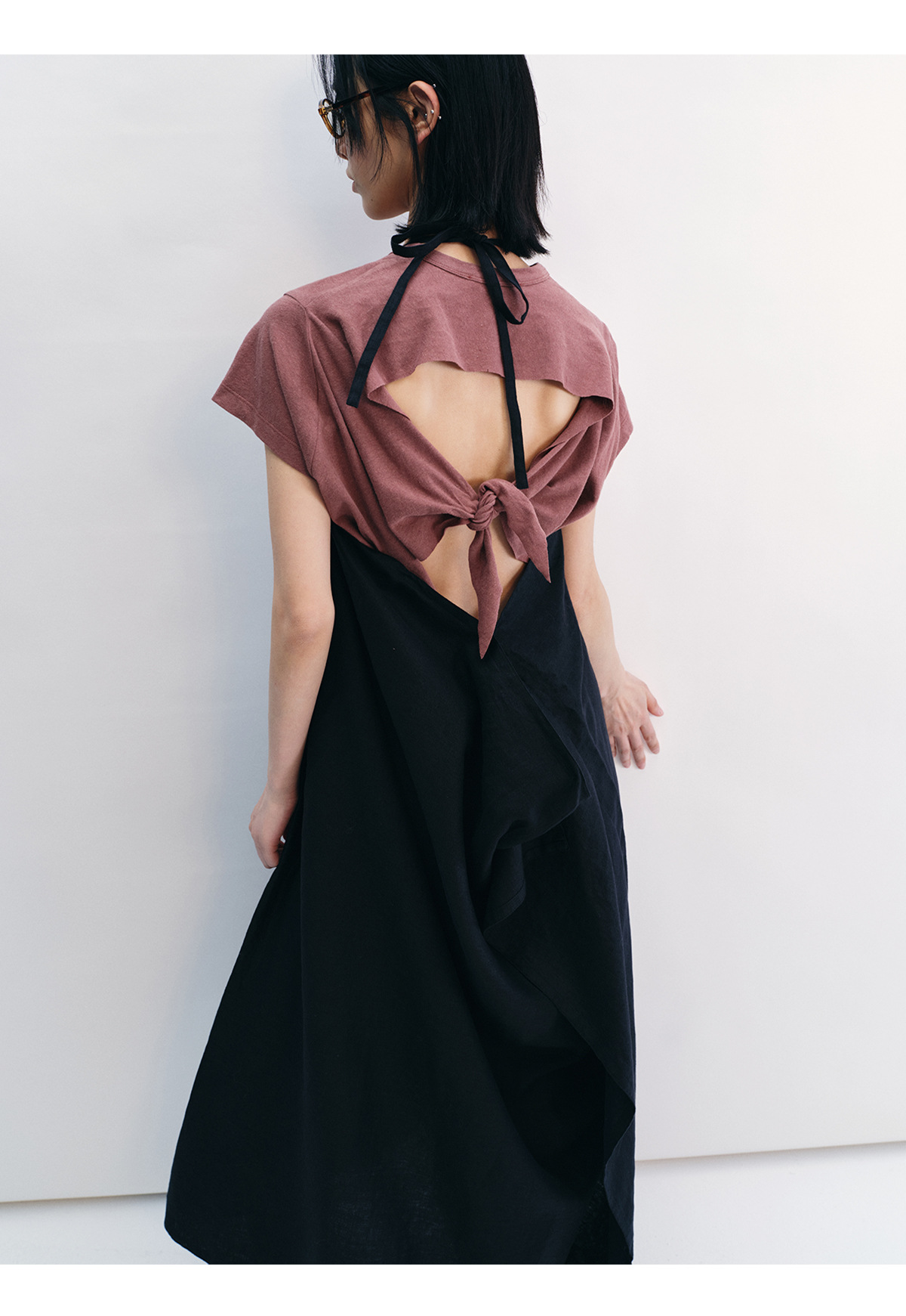 [타이밍] 새로운 리넨 주름 짜임새 휴가 레이스 스커트 백리스 불규칙한 원피스 여성 V8720스토어 가기