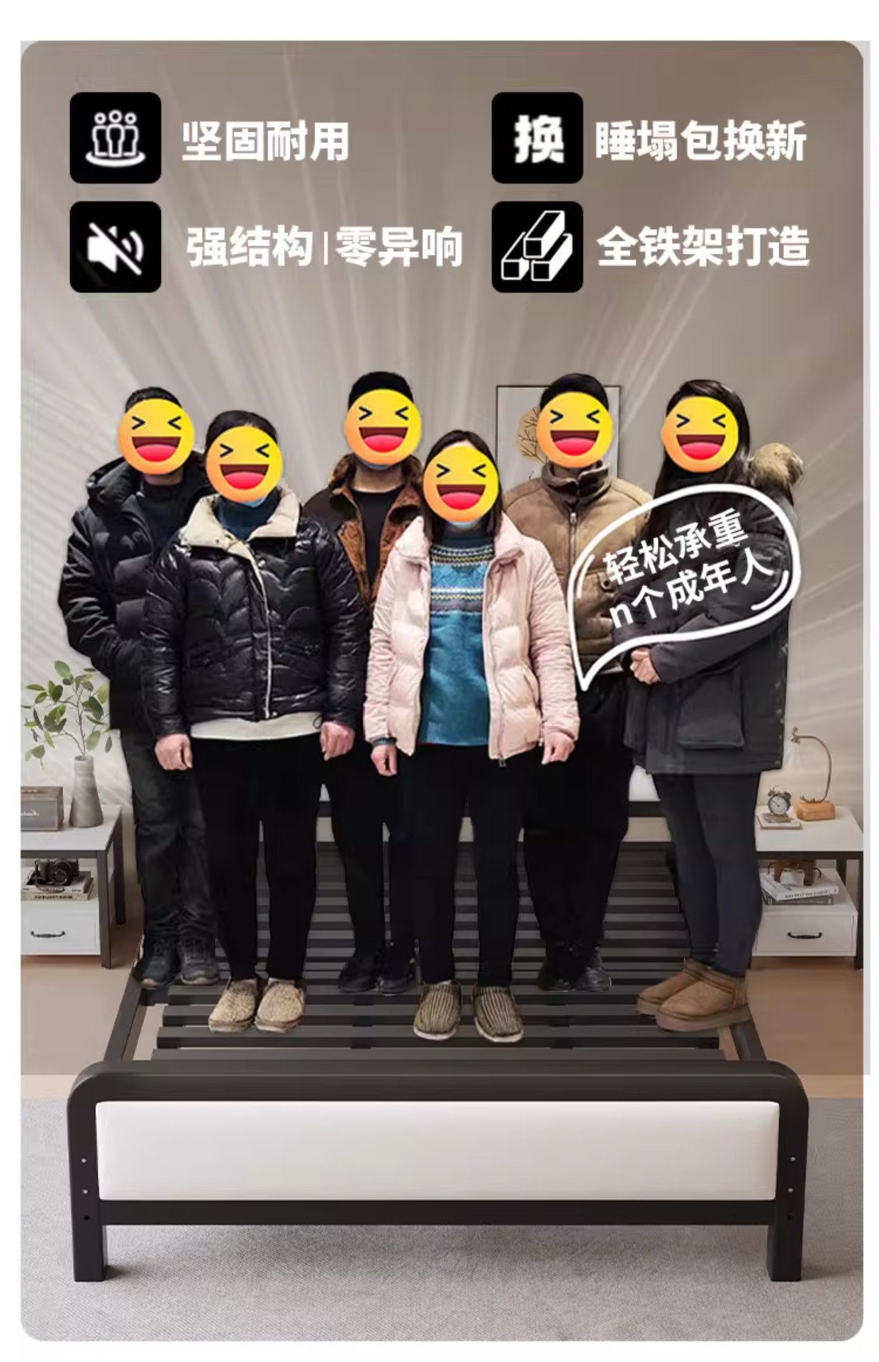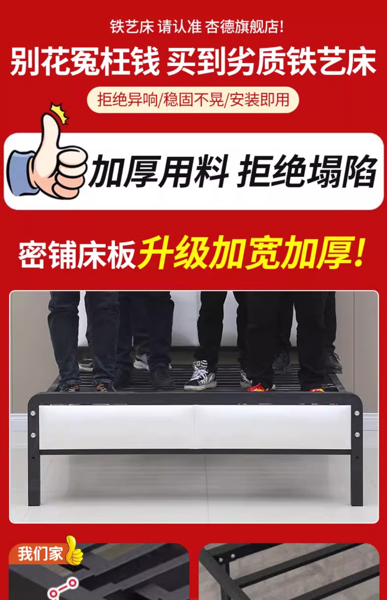 J^ 침대 1.8m 철제 침대 철제 침대 두꺼운 강화 더블 침대 1.5 싱글 북유럽 인터넷 연예인 현대 단순