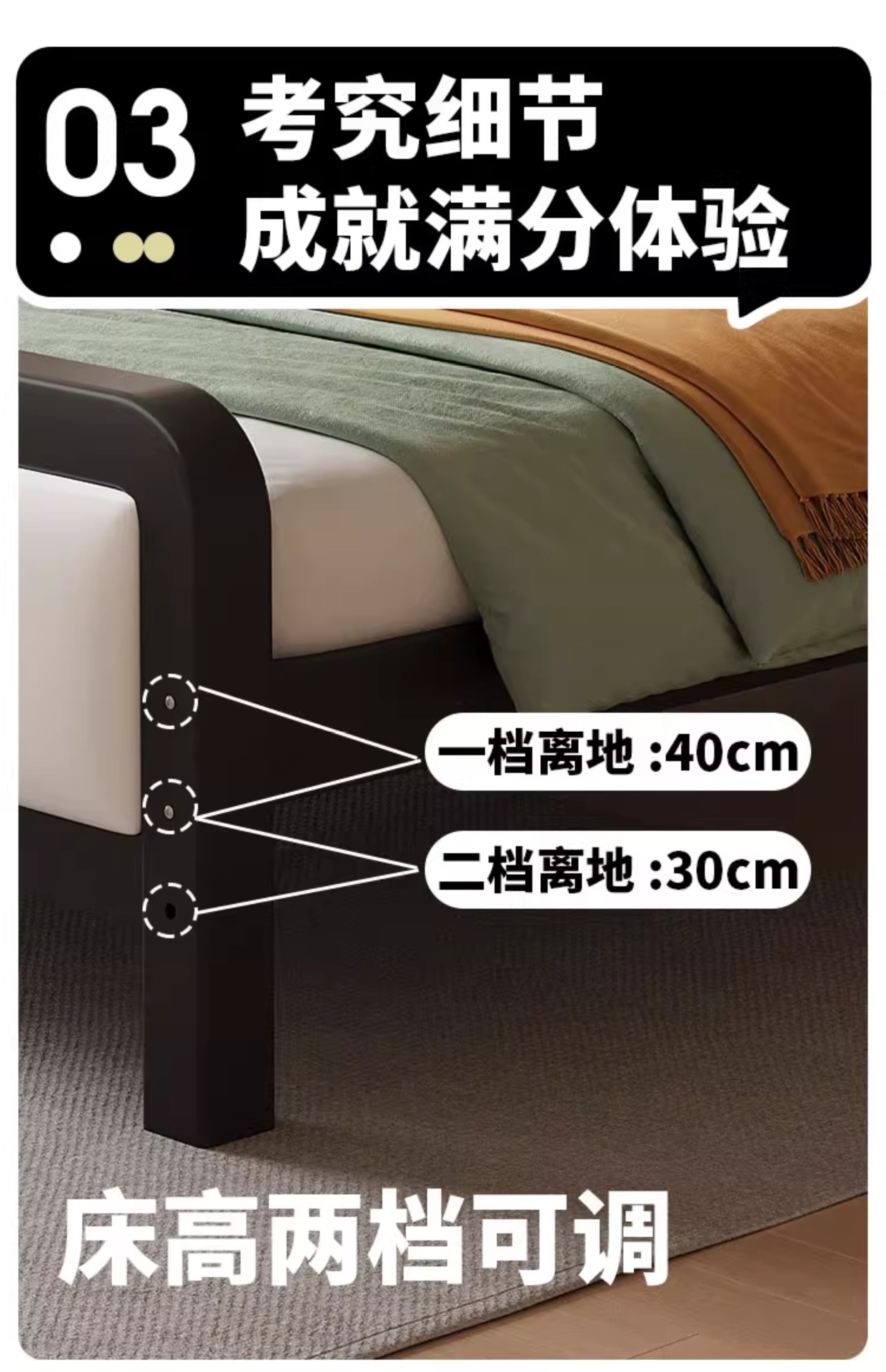 • 플랫 테일 + 8cm3E 브라운 매트가 포함된 고급스러운 소프트 패키지 블랙 침대