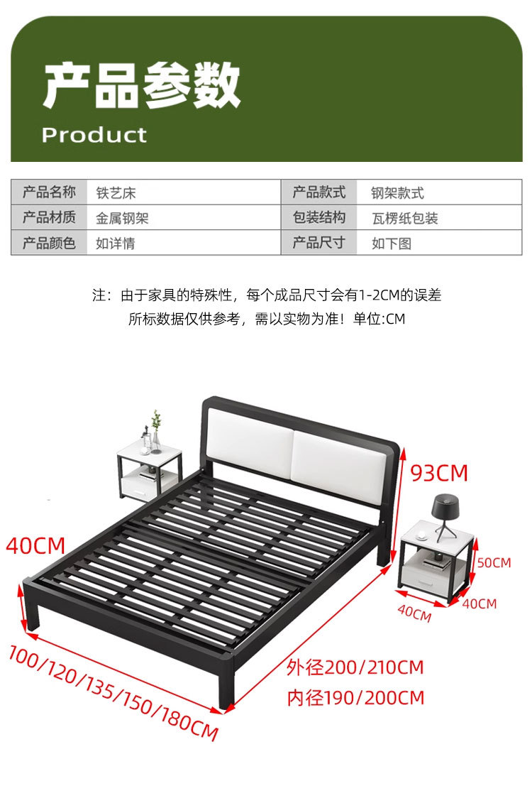J^ 침대 1.8m 철제 침대 철제 침대 두꺼운 강화 더블 침대 1.5 싱글 북유럽 인터넷 연예인 현대 단순스토어 가기