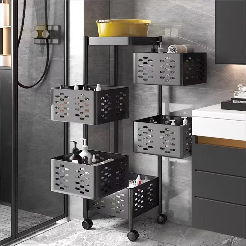 가정용 선반 주방 보관함 5층 스테인레스 스틸 컬러 발코니 선반 다층 보관함 정리 선반 보관함