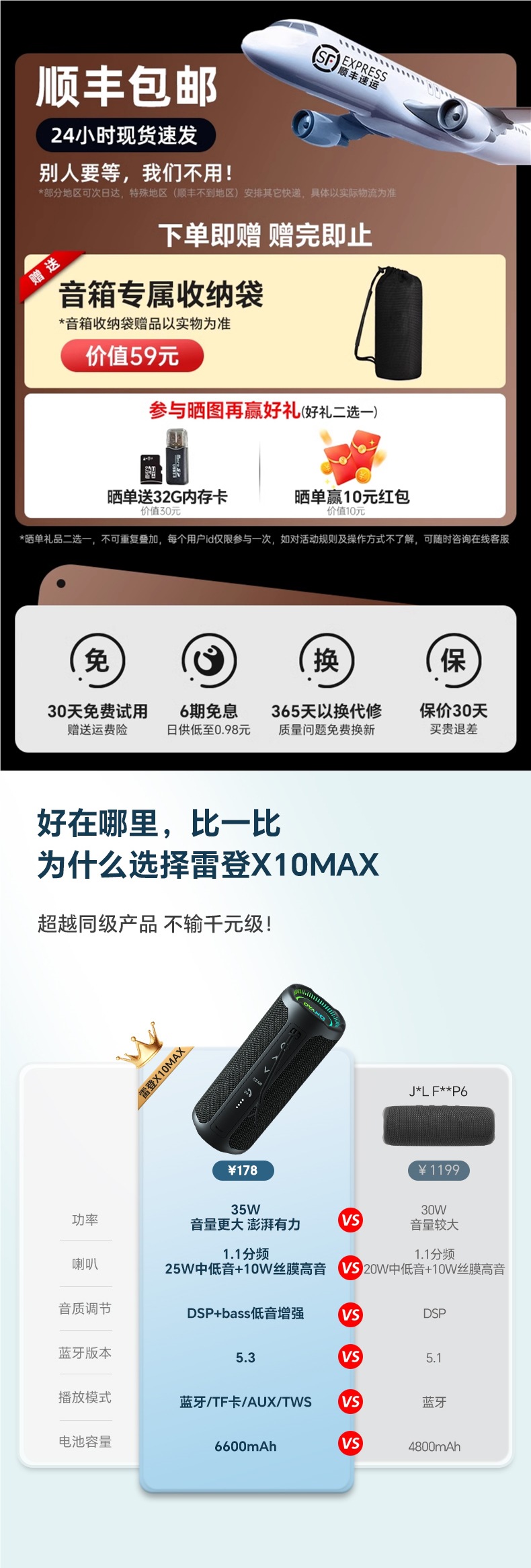 • Flame Red [새로운 상위 버전] 1.1 채널/35W 고출력/6600mAh 긴 배터리 수명/중저음 스위치