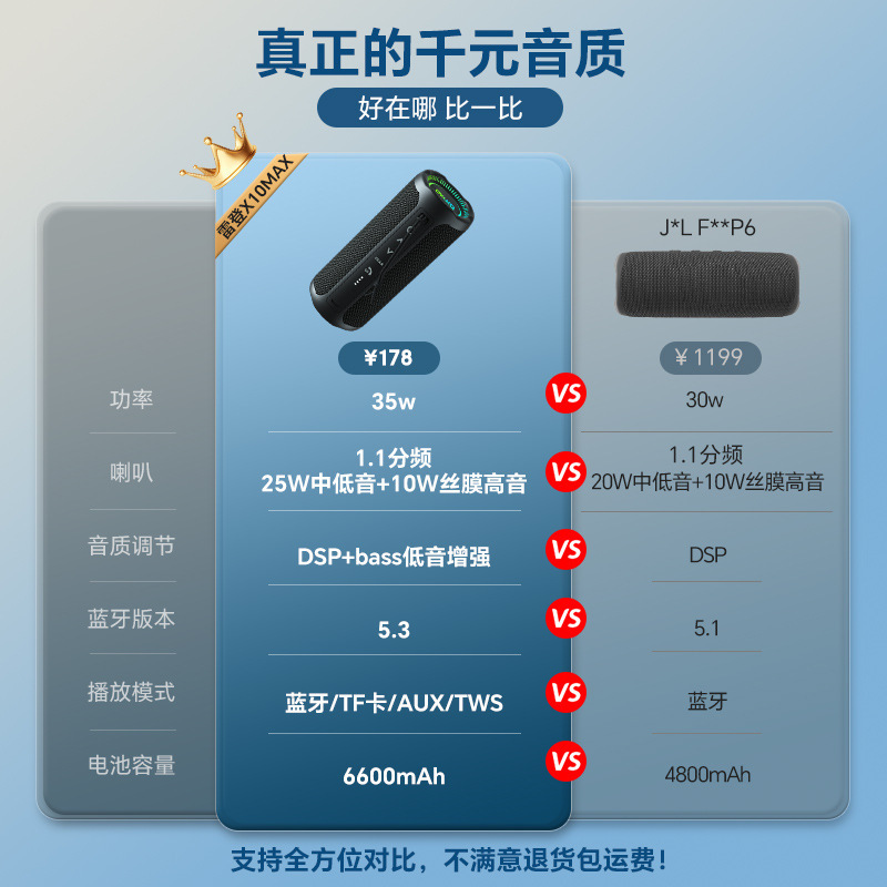 • Charming Black [새로운 상위 버전] 1.1 채널/35W 고출력/6600mAh 긴 배터리 수명/중저음 스위치