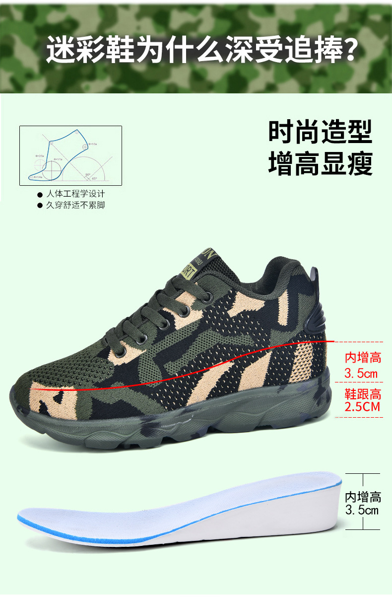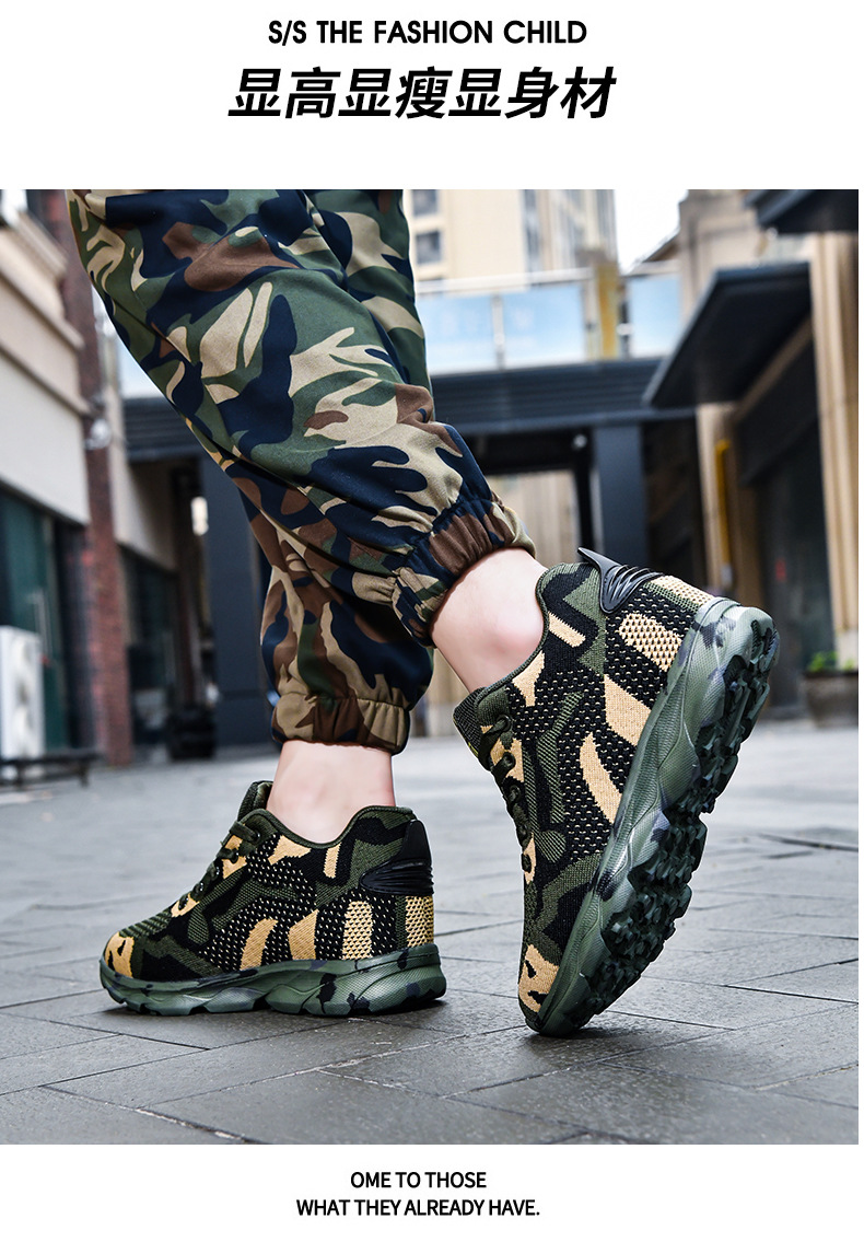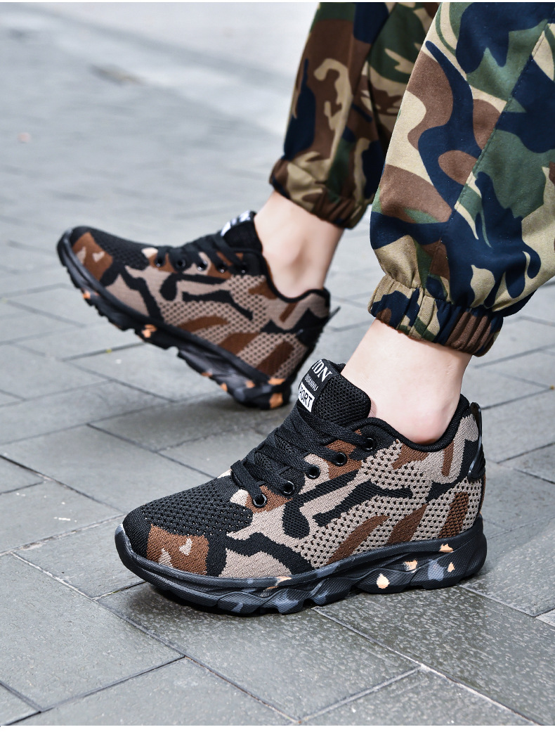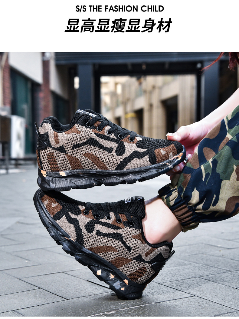 여성을 위한 새로운 위장 신발, 가볍고 편안하며 내부 높이가 증가하는 여성 신발, 야외 캐주얼 신발, 플라이 우븐 패셔너블하고 통기성이 뛰어난 여성 신발