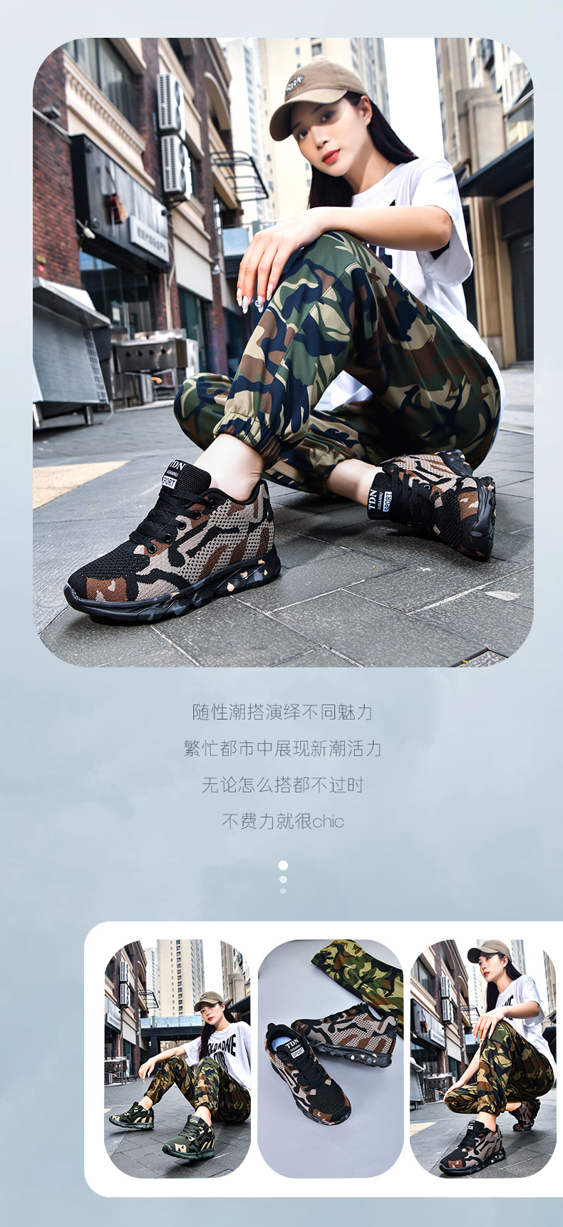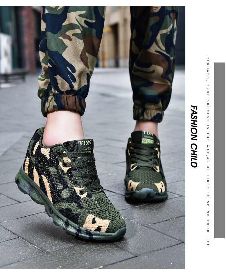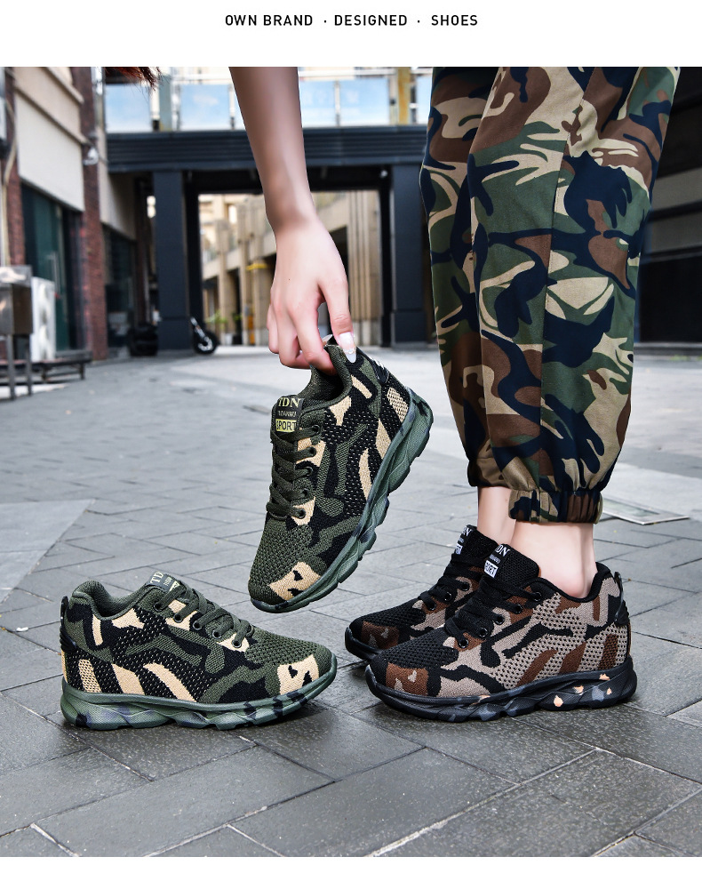 여성을 위한 새로운 위장 신발, 가볍고 편안하며 내부 높이가 증가하는 여성 신발, 야외 캐주얼 신발, 플라이 우븐 패셔너블하고 통기성이 뛰어난 여성 신발
