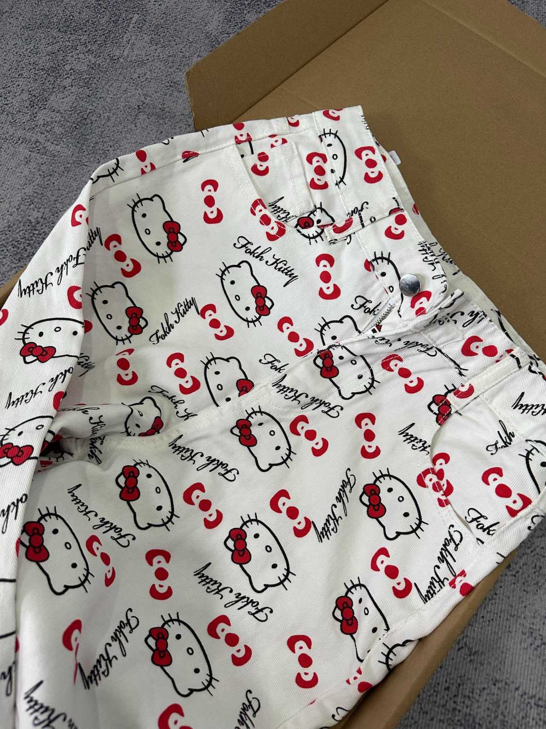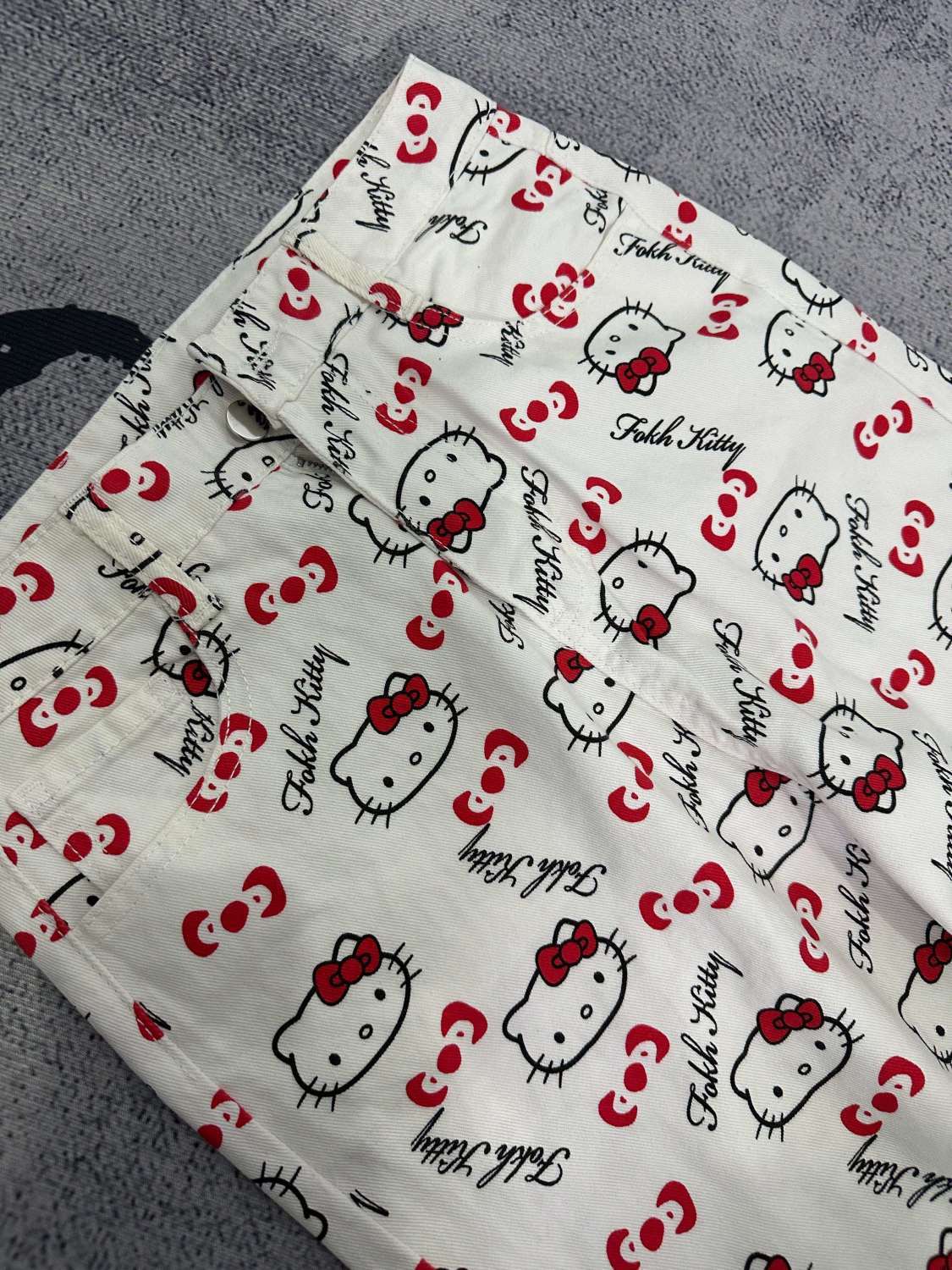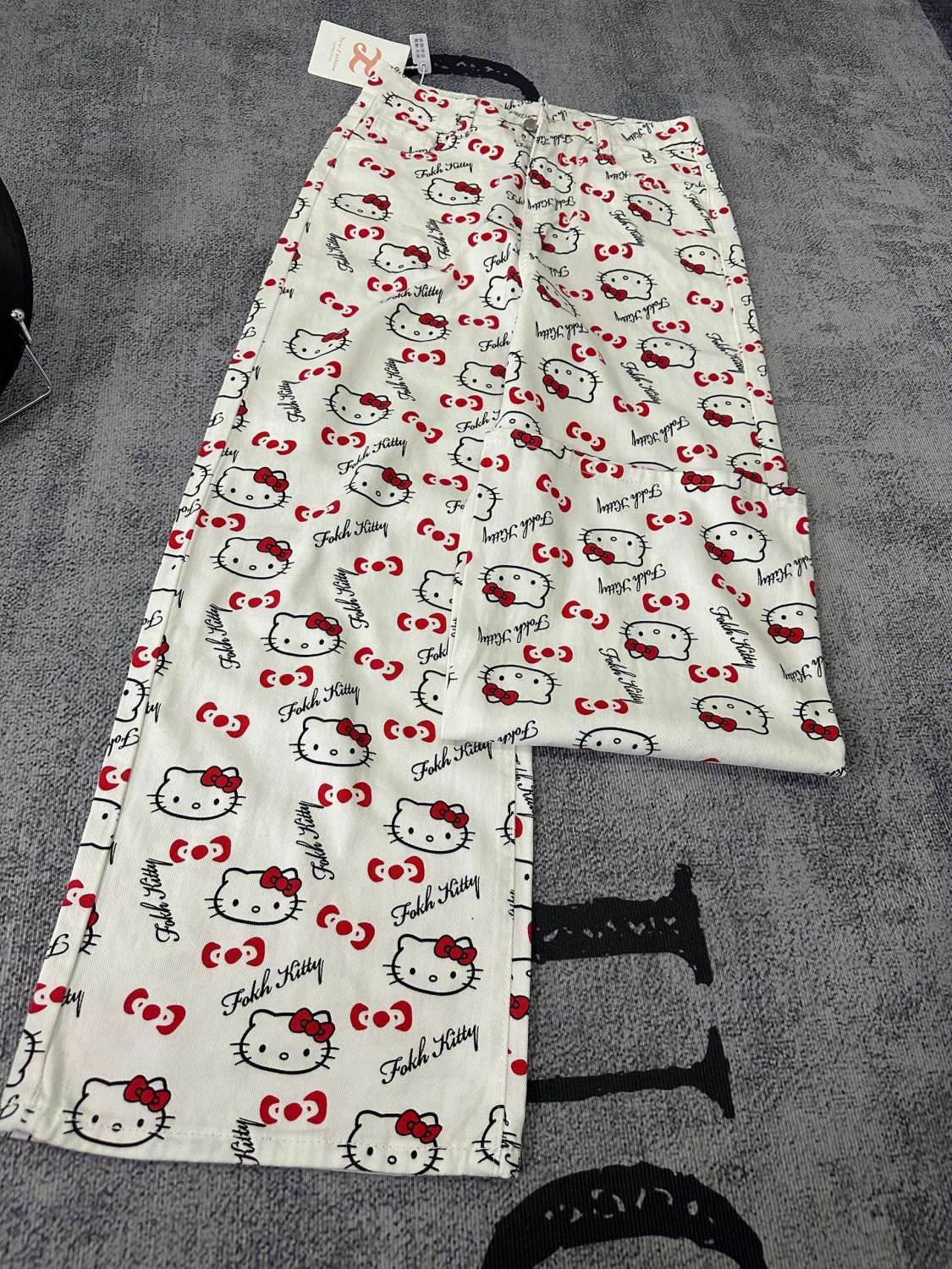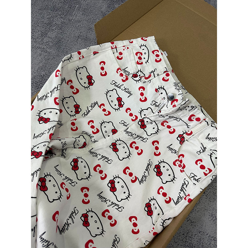 화이트 키티 고양이 인쇄 높은 허리 청바지 여성의 2025 여름 새로운 스타일 스트레이트 느슨한 넓은 다리 유행 바지스토어 가기