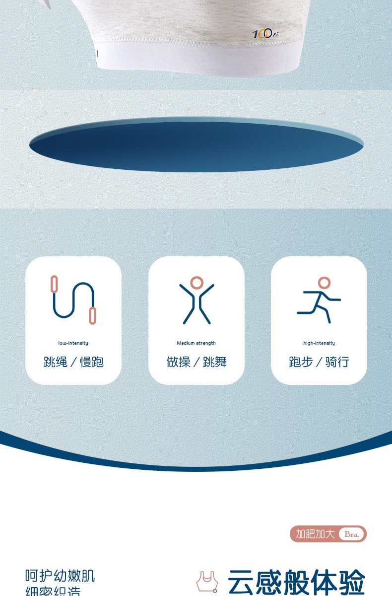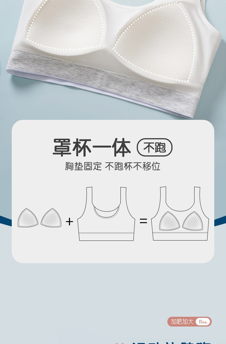 어깨가 넓고 등이 아름다운 학생들을 위한 심리스 플러스 사이즈, 노출 방지, 와이어 프리 고정 컵, 소녀용 순면 스포츠 브라스토어 가기